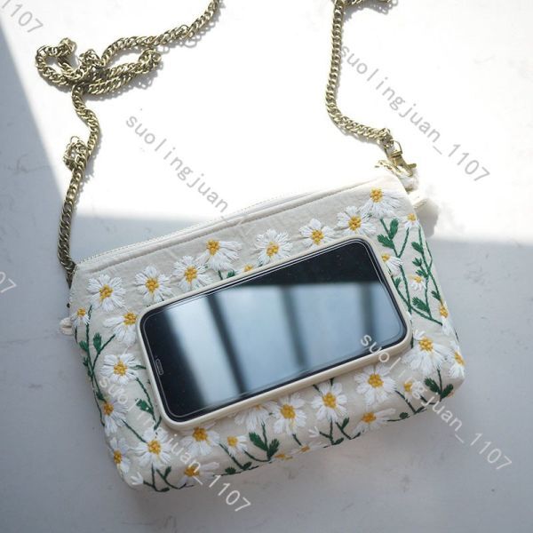 ハンドメイド 刺繍 バッグ ハンドバッグ 花の刺繍 ショルダーバッグ #0059