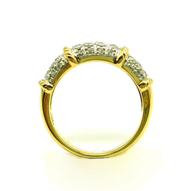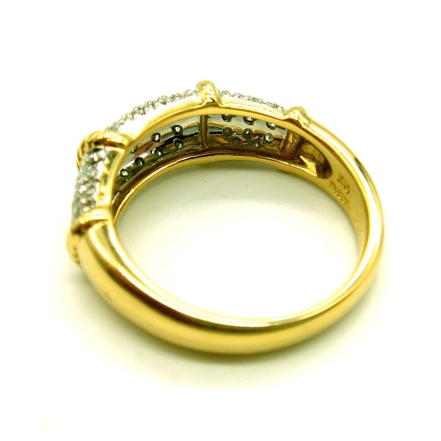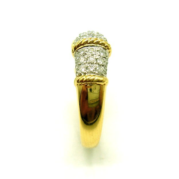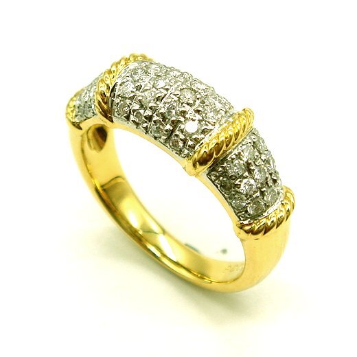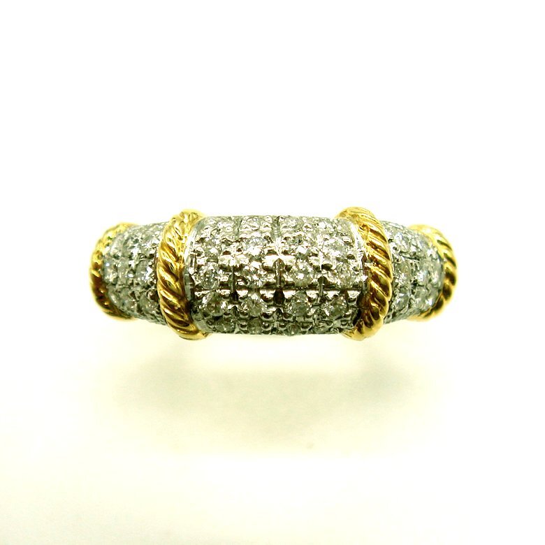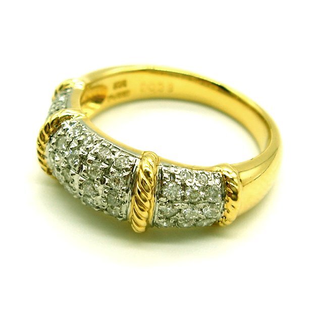 ダイヤが石留されている部分だけがプラチナとなっており、3個のプラチナパーツをK18の本体枠にロウ付けしたとても手の込んでいるリングです。