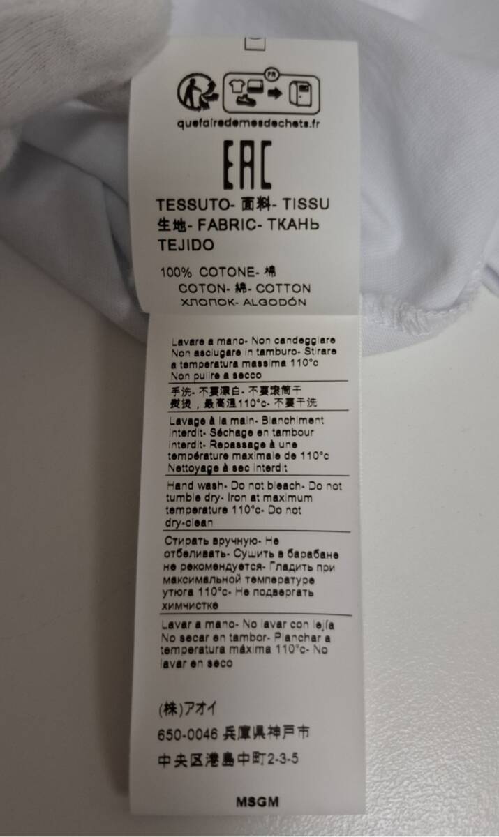 【貴重】MSGM イタリア製 半袖Tシャツ 白 ビッグロゴプリント Sサイズ
