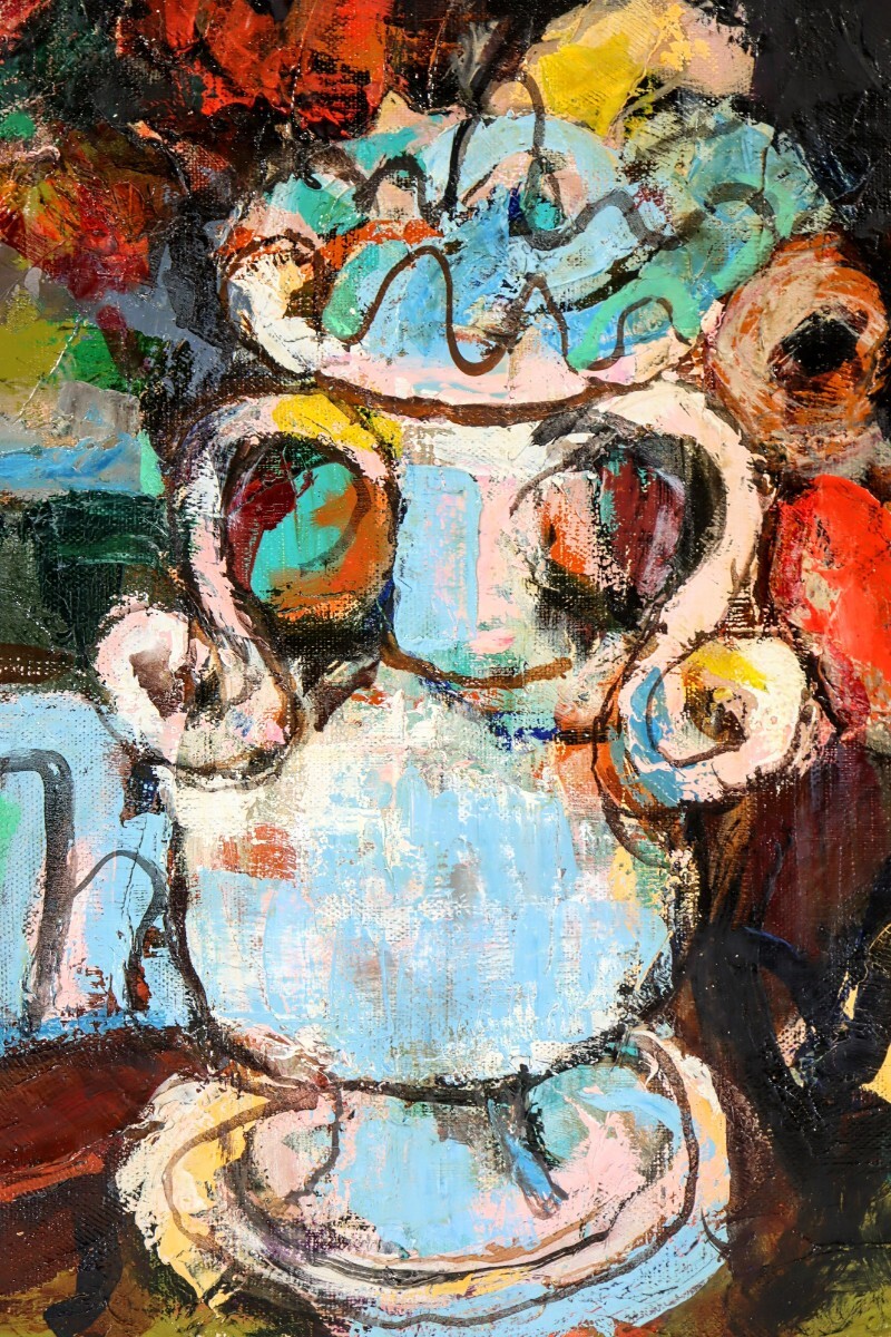 真作 海江田豊光 1972年パリで制作 油彩「花」画寸 F8 鹿児島県出身 ル・サロン会員 夢のような色彩 細部に拘らず強い印象を与える 11165