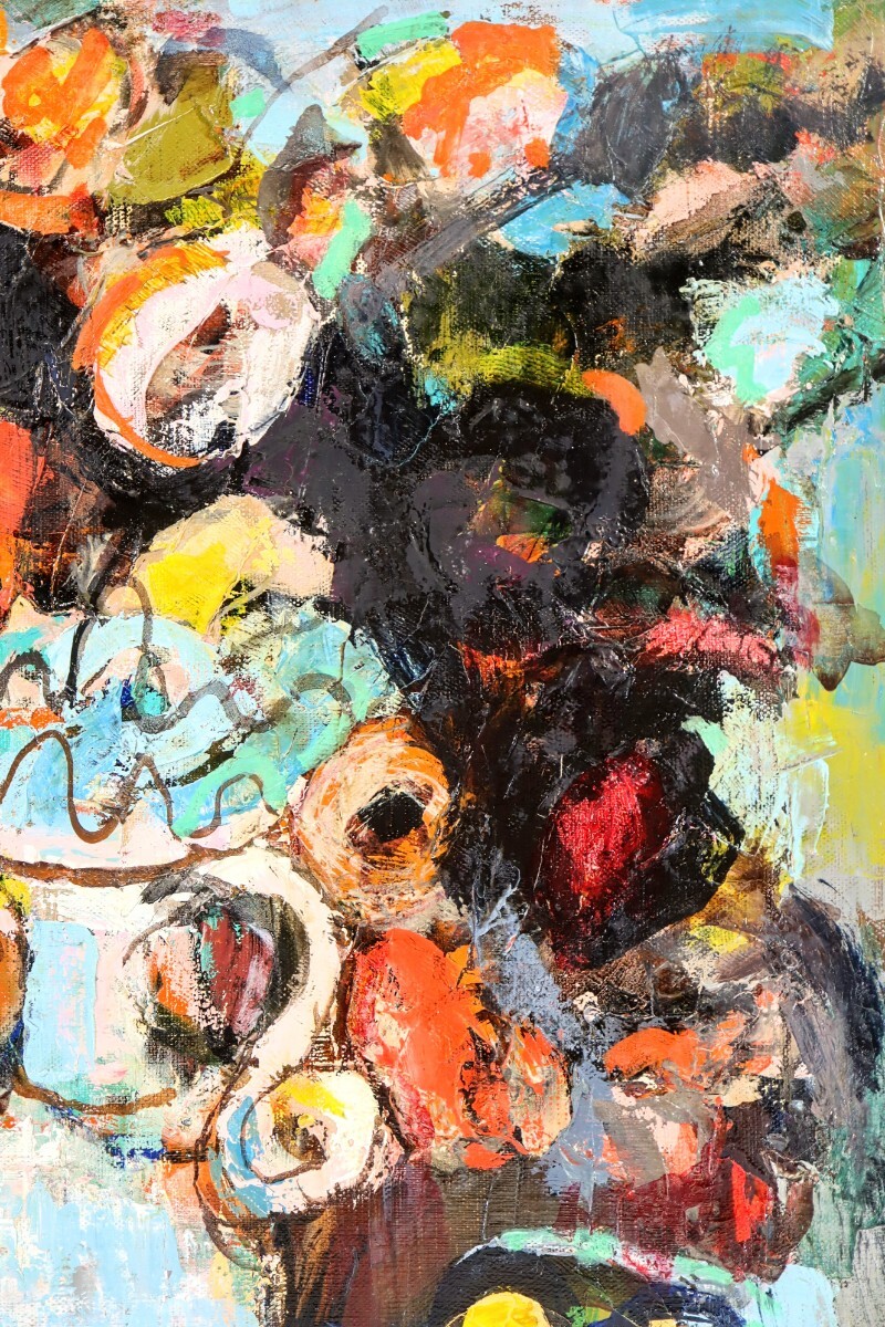 特に、背景の混ざり合う色や勢いのあるタッチが、