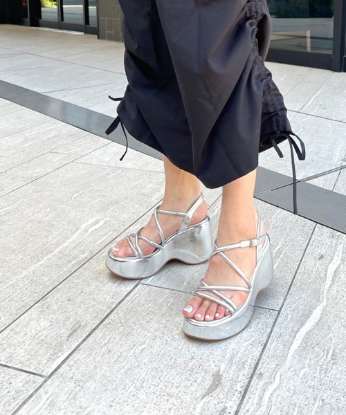 参考商品名:【R&E】コードクロスストラップ厚底ウェッジソールサンダル