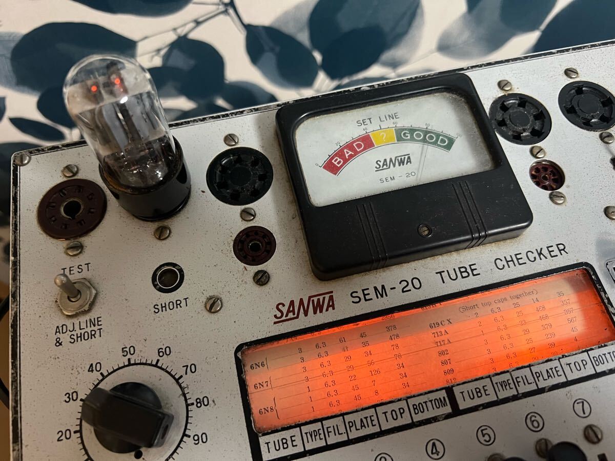 当方の試験機で同型式の未使用の真空管を試験すると75程度の値を示しますので基準として参考にしてください。