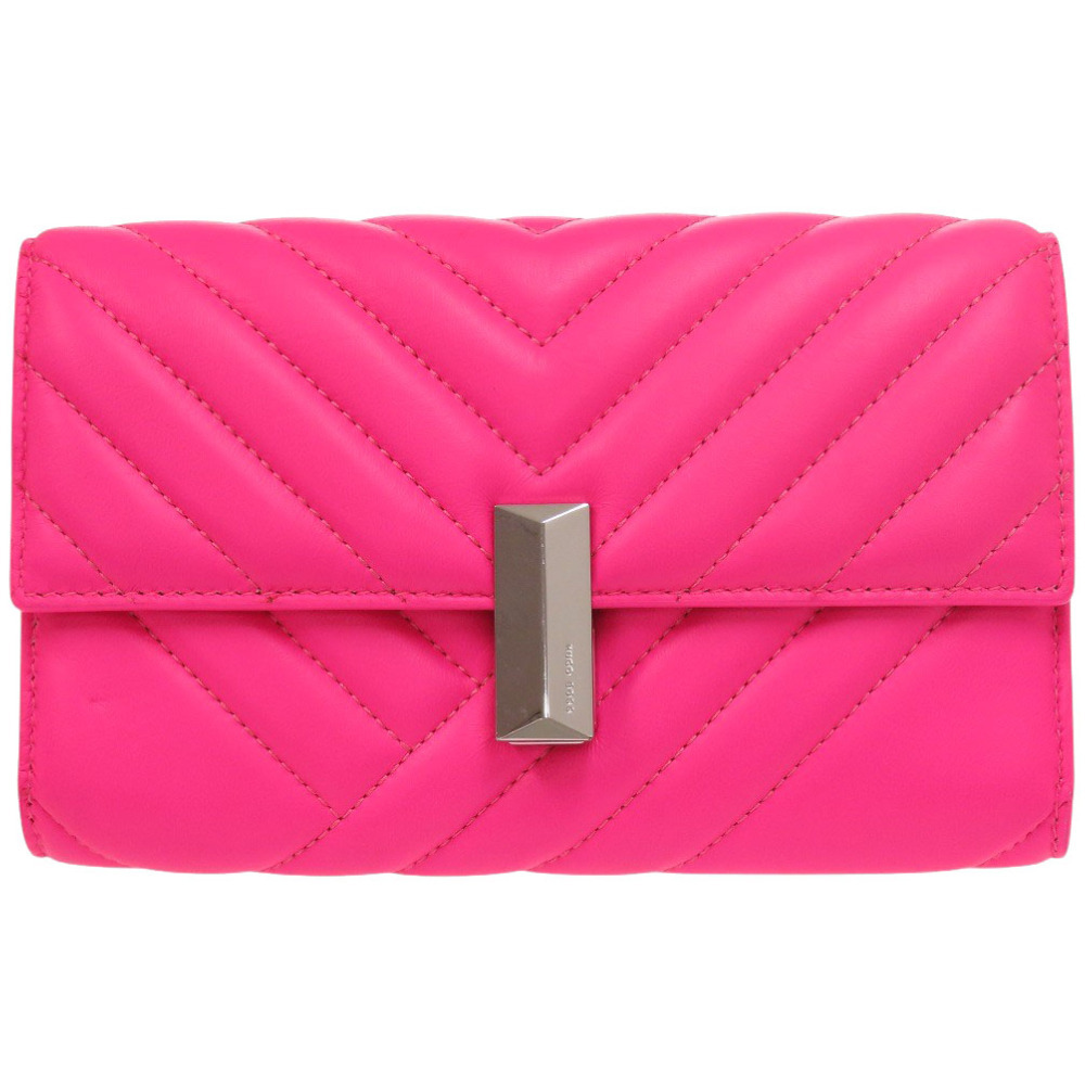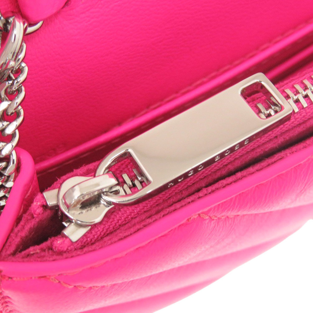 美品 ヒューゴボス キルティング シープレザー ピンク 長財布 1776 HUGO BOSS