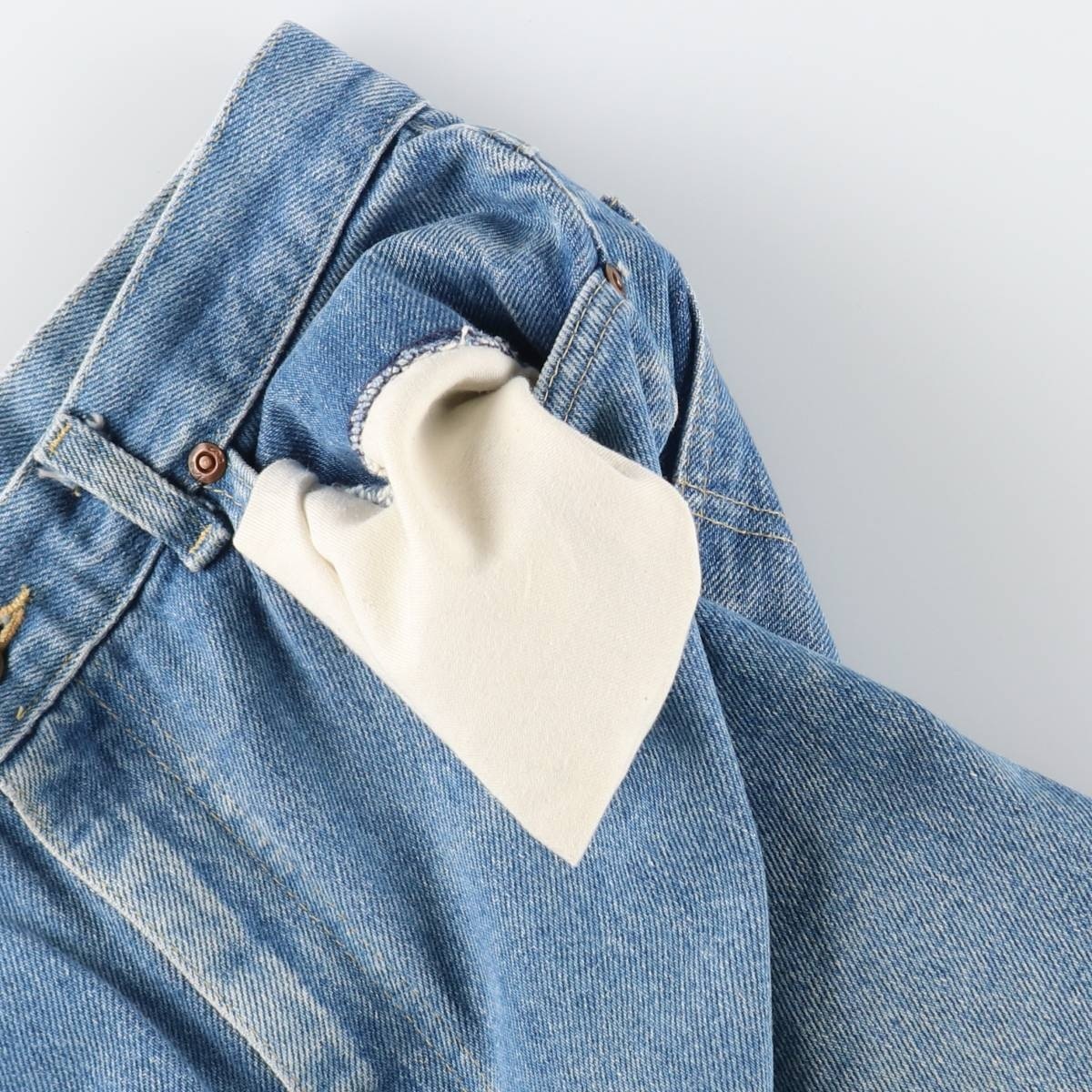 | 着用感: レディースL(w29) 表記サイズ: 不明 ウエスト: 74cm 股上: 33cm 股下: 79.5cm もも周り: 65cm 裾周り: 40cm ![]() | ![]() ランク:C USEDデニムですので使用感、擦れ、色落ちなどございますが、まだまだご愛用していただけます。 古着という事をご理解の上ご注文よろしくお願いします。 【状態追記】 ●前、全体的に汚れ ●前、左ポケット内に汚れ ●後、ヒップ・両裾に汚れ ●両裾周りに擦れ・汚れ |