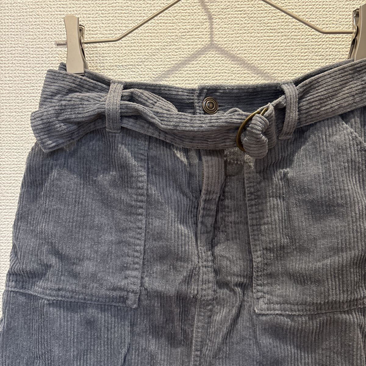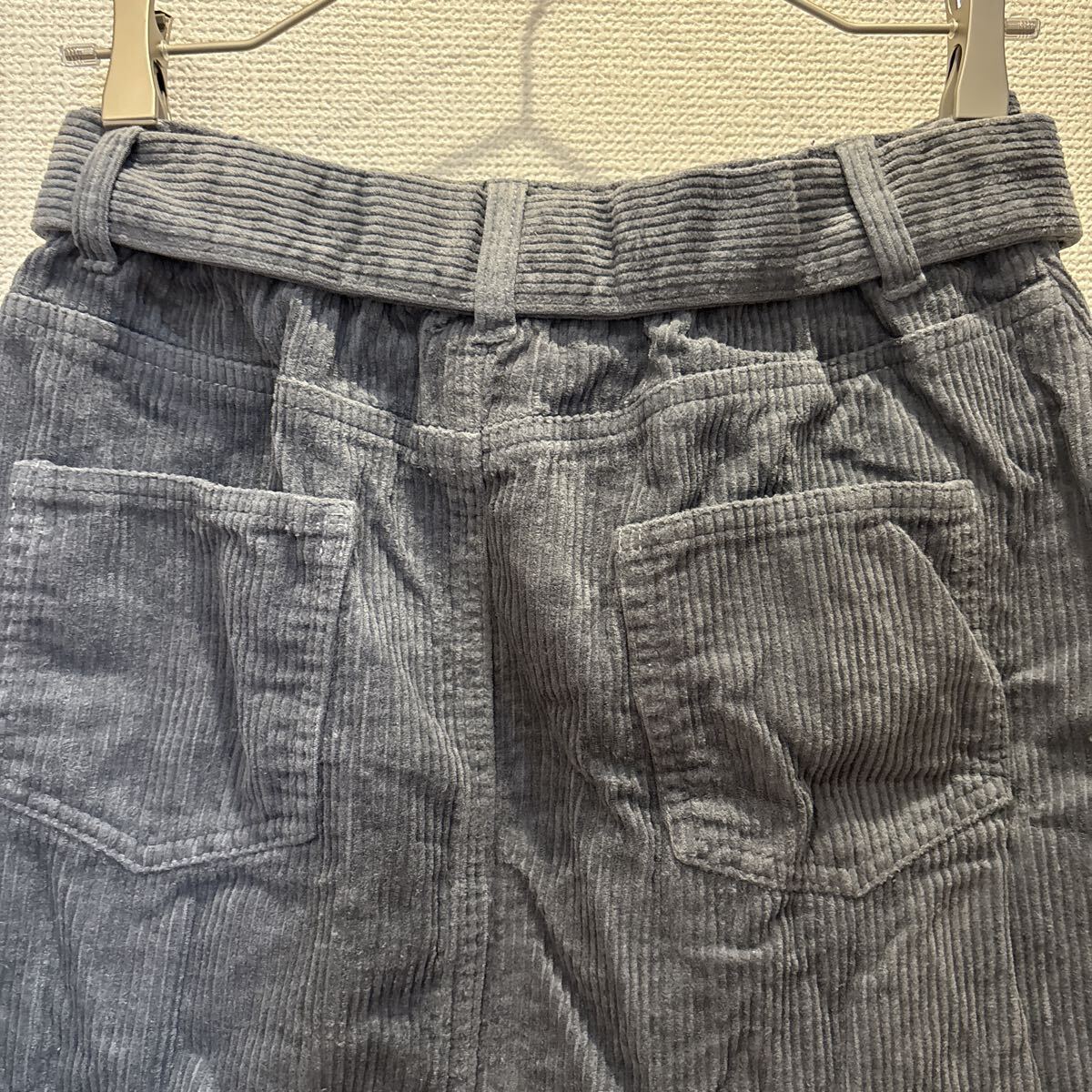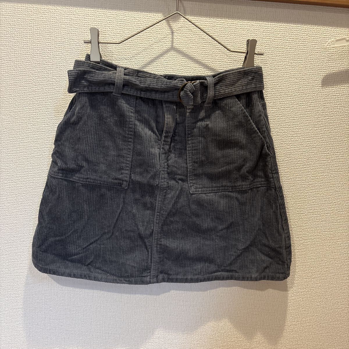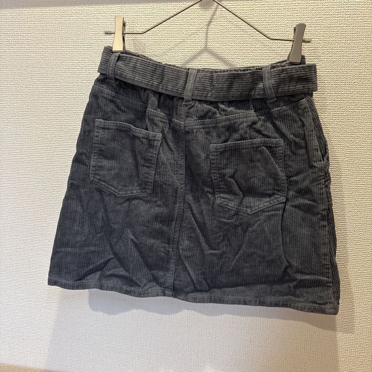 コーデュロイ素材のグレー系ミニスカートです。
