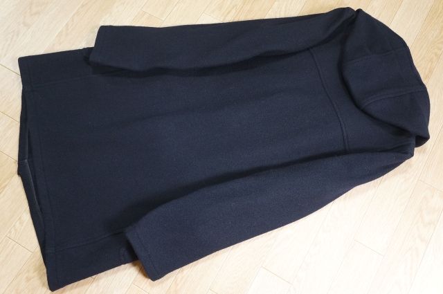 カラー : ダークネイビー (黒に近い紺色)、 見た目ほぼ黒といった感じです。
