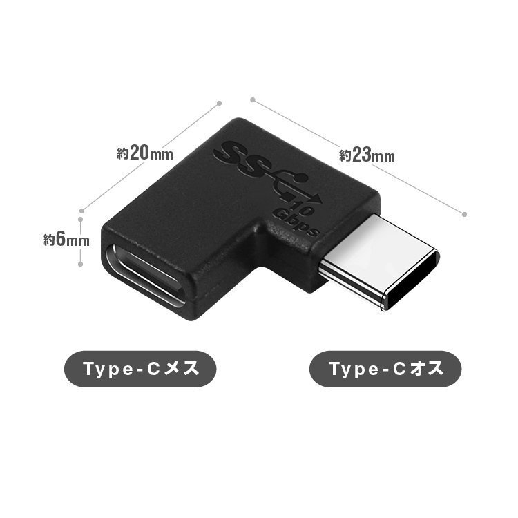 ◆Type C L字型アダプタ USB-Cオス to USBCメス 高速充電 データ転送 PC/スマホ/タブレット/ゲーム機器など 変換コネクタ Type-C オス メス 変換コネクタ TPC1112