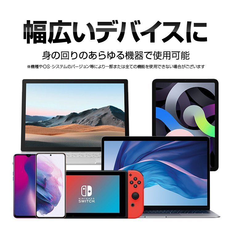 iPhoneやiPad、各種Androidスマホをはじめ、macbookやsurface、WindowsPC等各種PCやラップトップ、またNintendo SwitchまでType-C搭載のパソコン、タブレット、スマホなどあらゆるデバイスで使用できます。