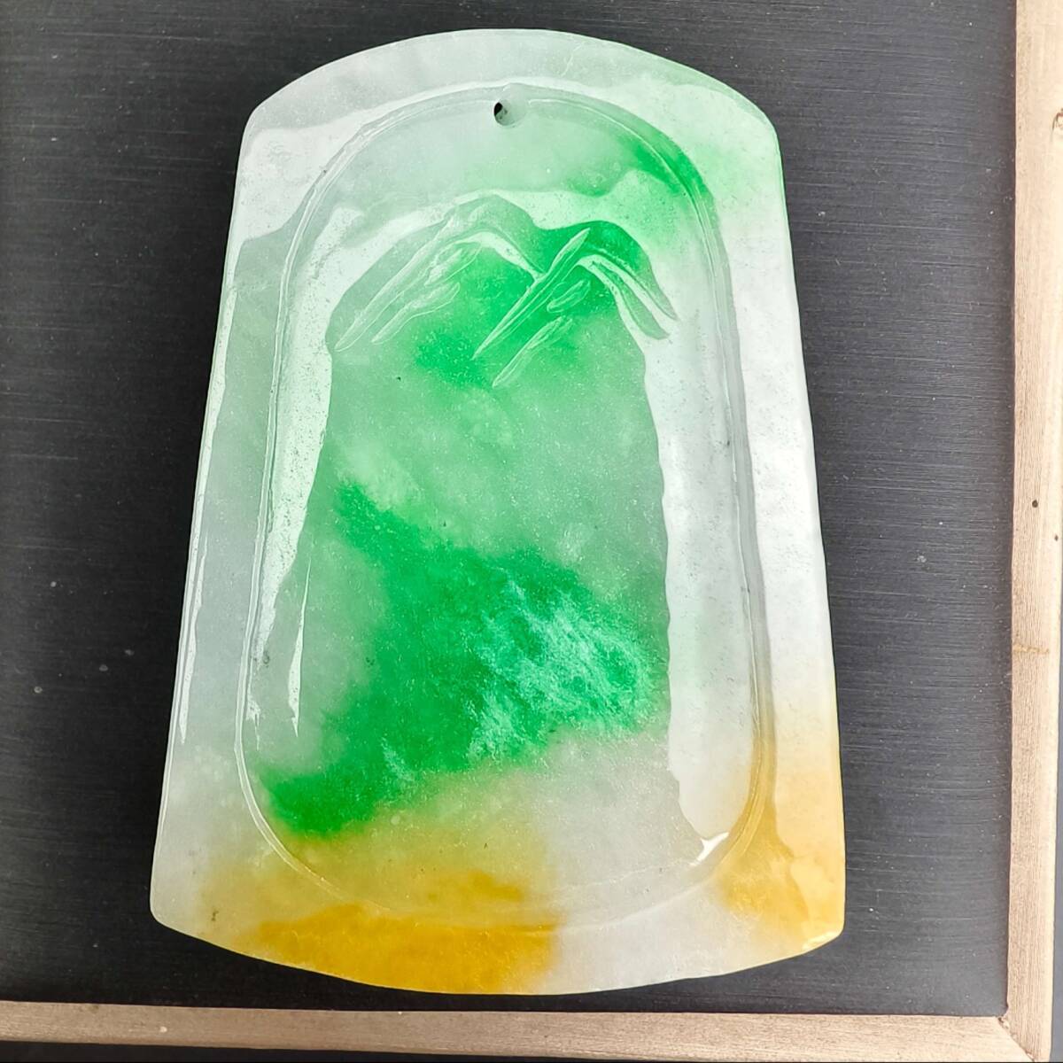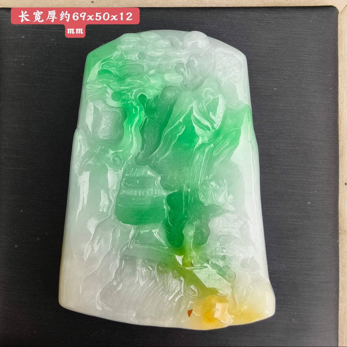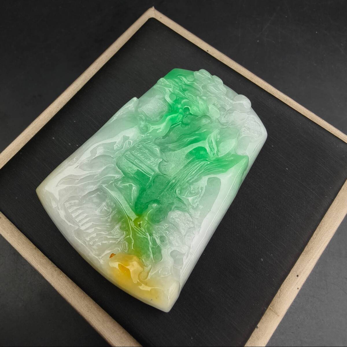 【超珍館蔵】翡翠製 細密彫 山水玉牌ペンダント 根付 裝身具 古賞物 古董品 古美術品 時代物 旧家蔵出 稀少珍蔵品