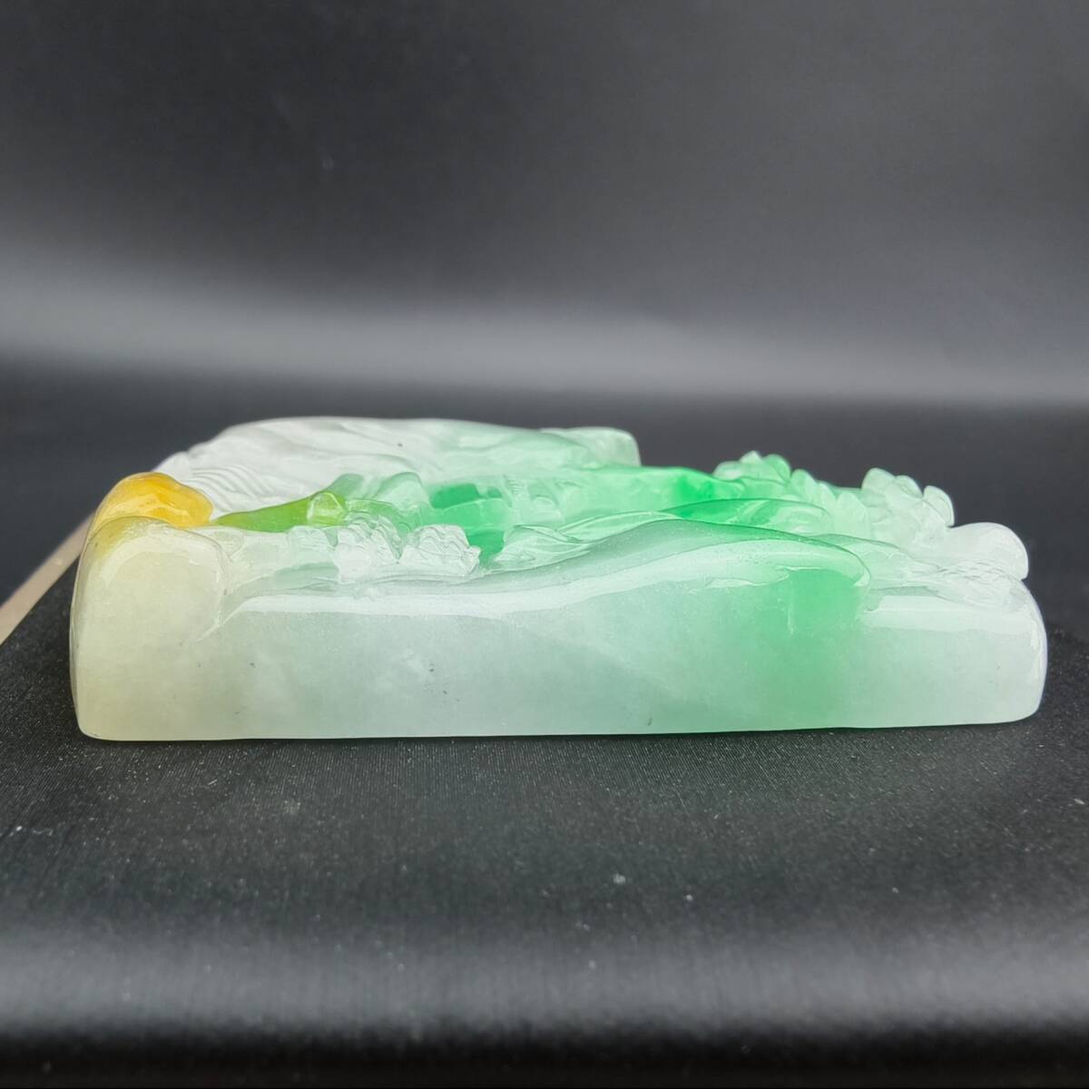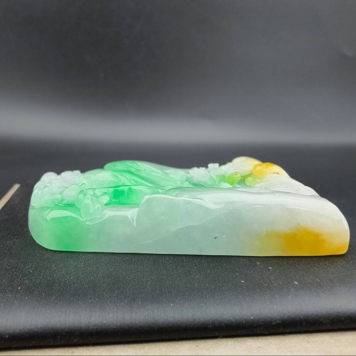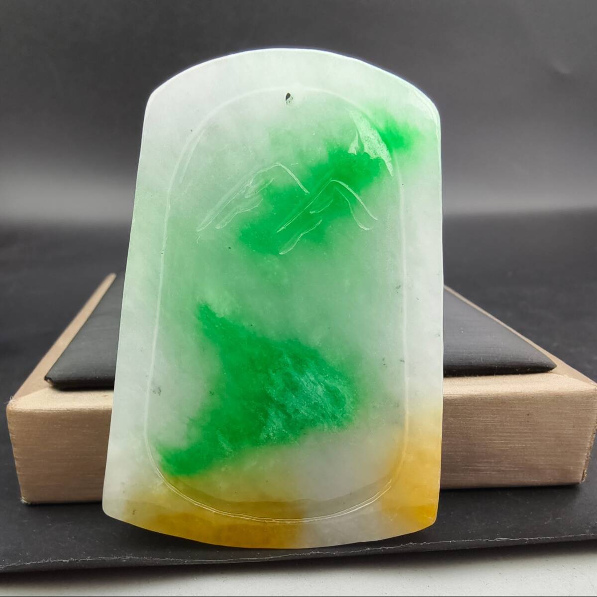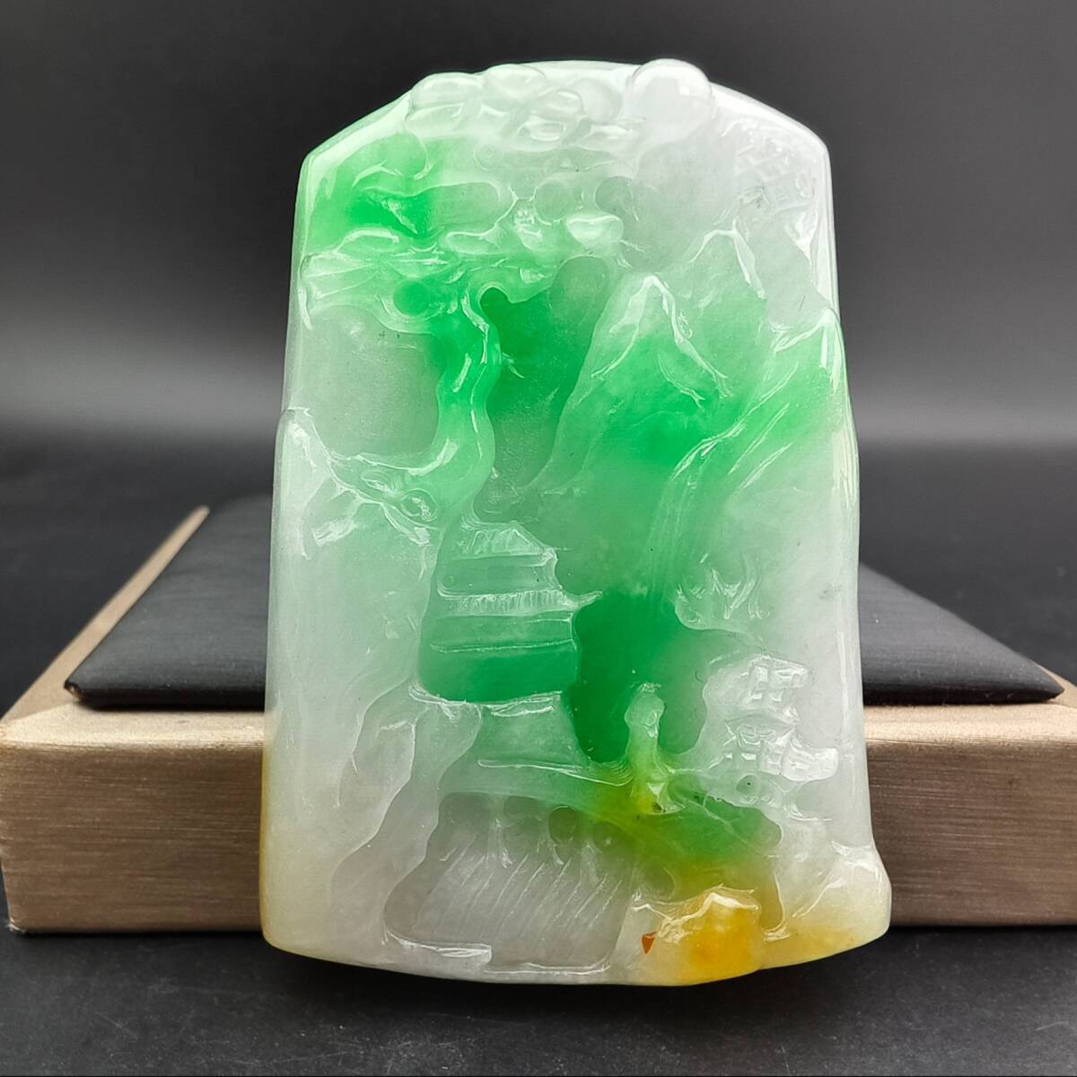 【超珍館蔵】翡翠製 細密彫 山水玉牌ペンダント 根付 裝身具 古賞物 古董品 古美術品 時代物 旧家蔵出 稀少珍蔵品