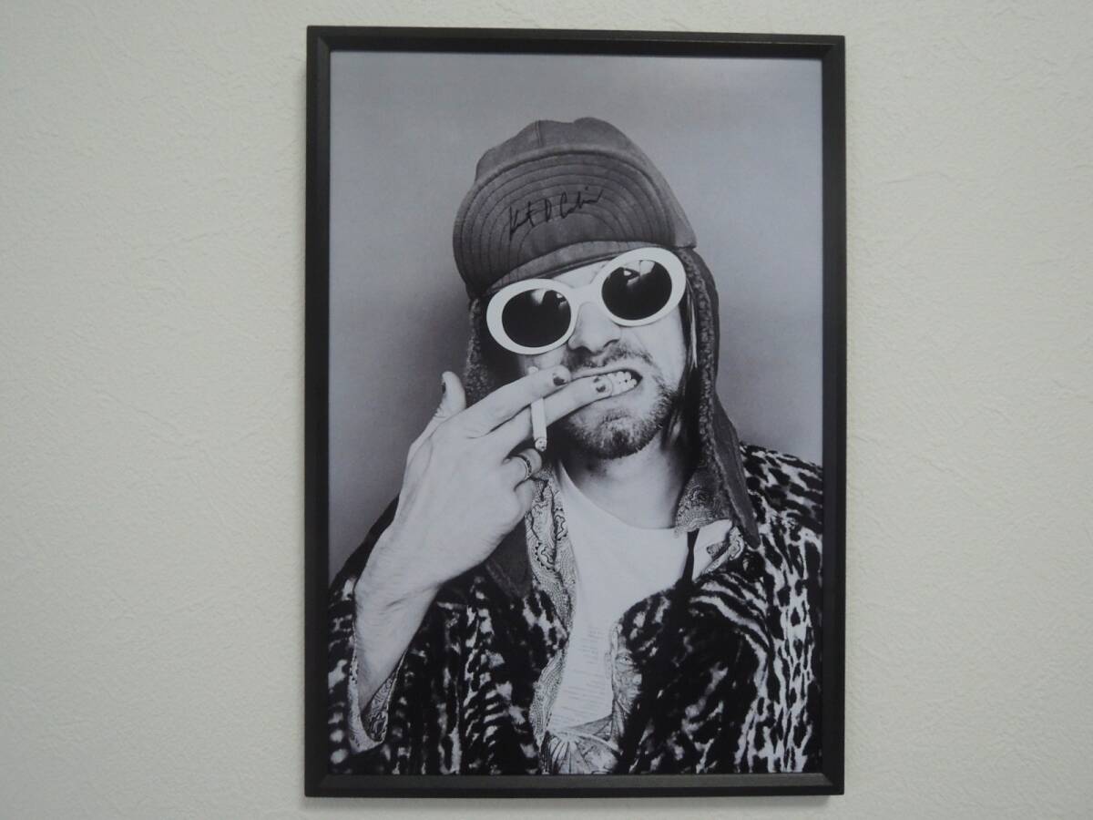 A4 額付き ポスター カートコバーン Kurt Cobain ファッション Nirvana フォト 白黒