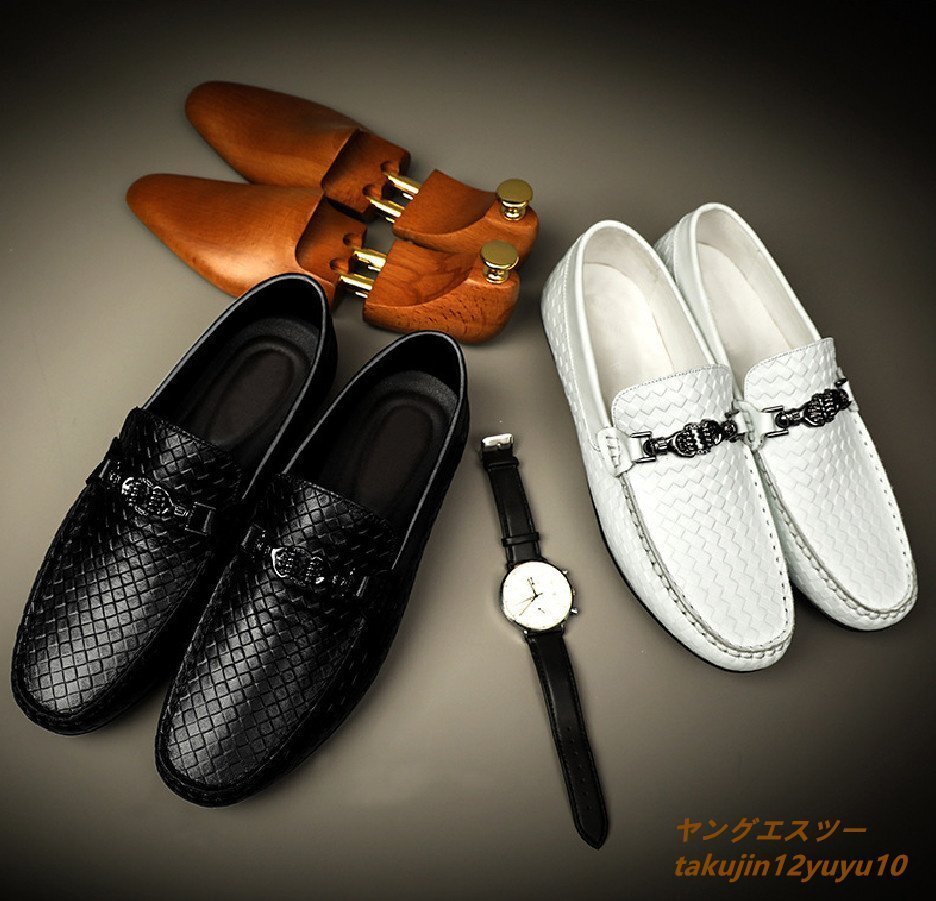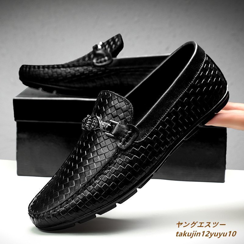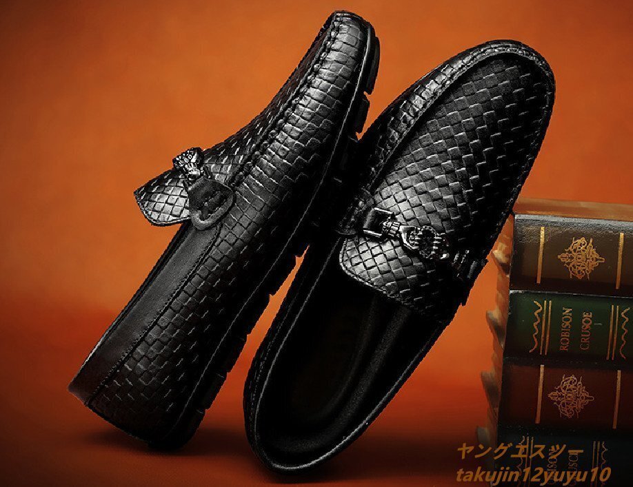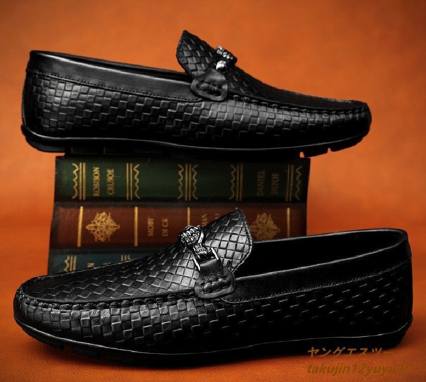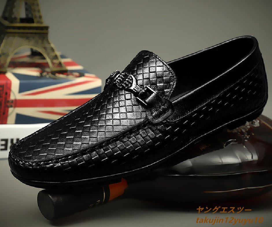 正規品★ローファー スリッポン チェック柄 ドライビングシューズ 牛革 ビジネスシューズ 本革 メンズ 紳士靴 レザーシューズ 黒 28.0cm