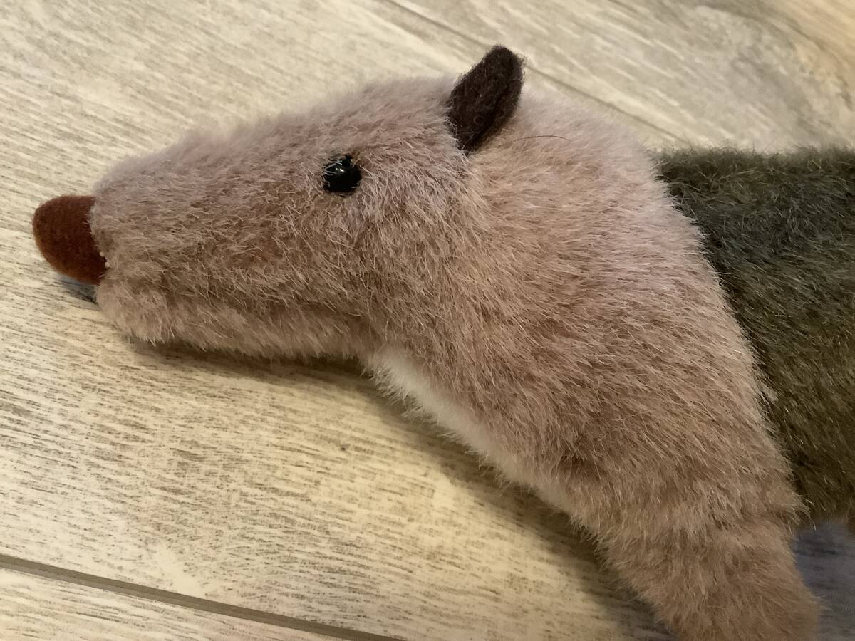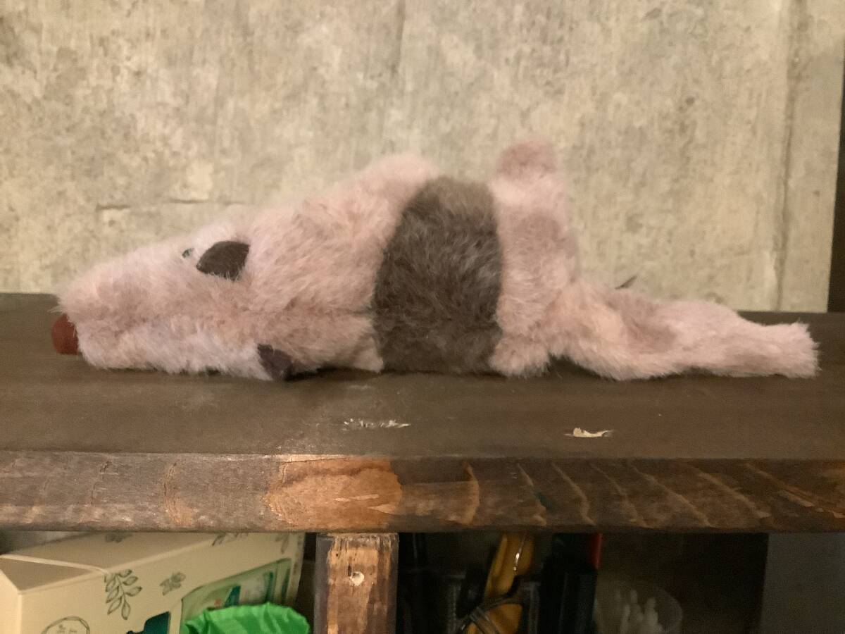 長期自宅保管していました。 ややユガミ、毛羽立ちあり ホームクリーニング済み。 鼻先から尻尾先まで25センチ程度です