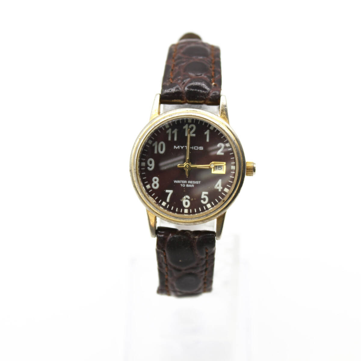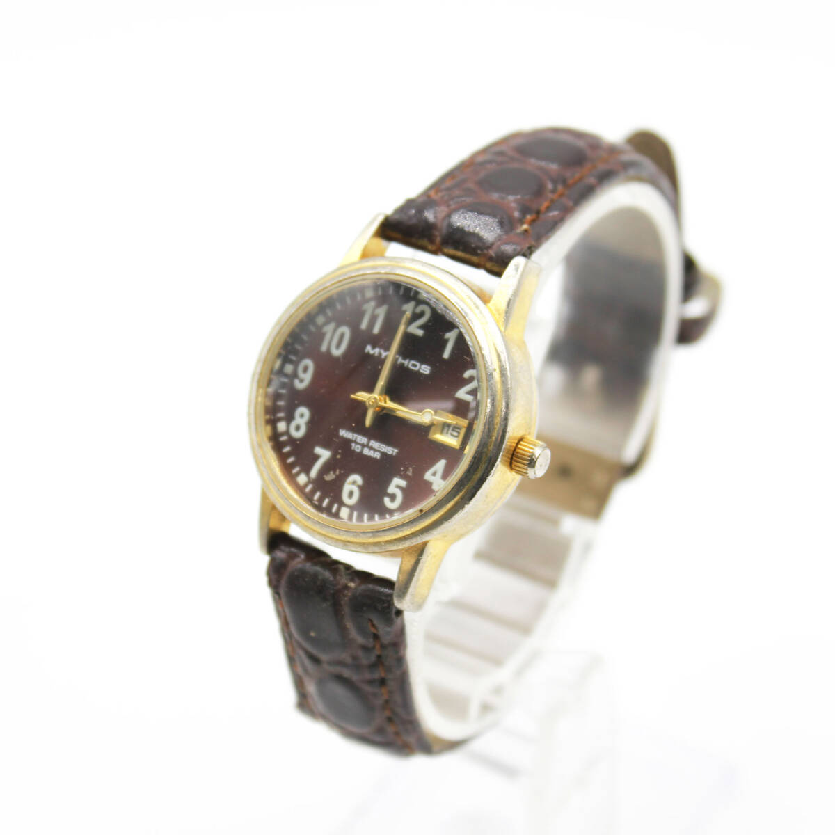 W250903-01 MYTHOS J-AXIS ジェイアクシス レディース腕時計 クォーツ デイト ジャンク 文字盤ブラウン