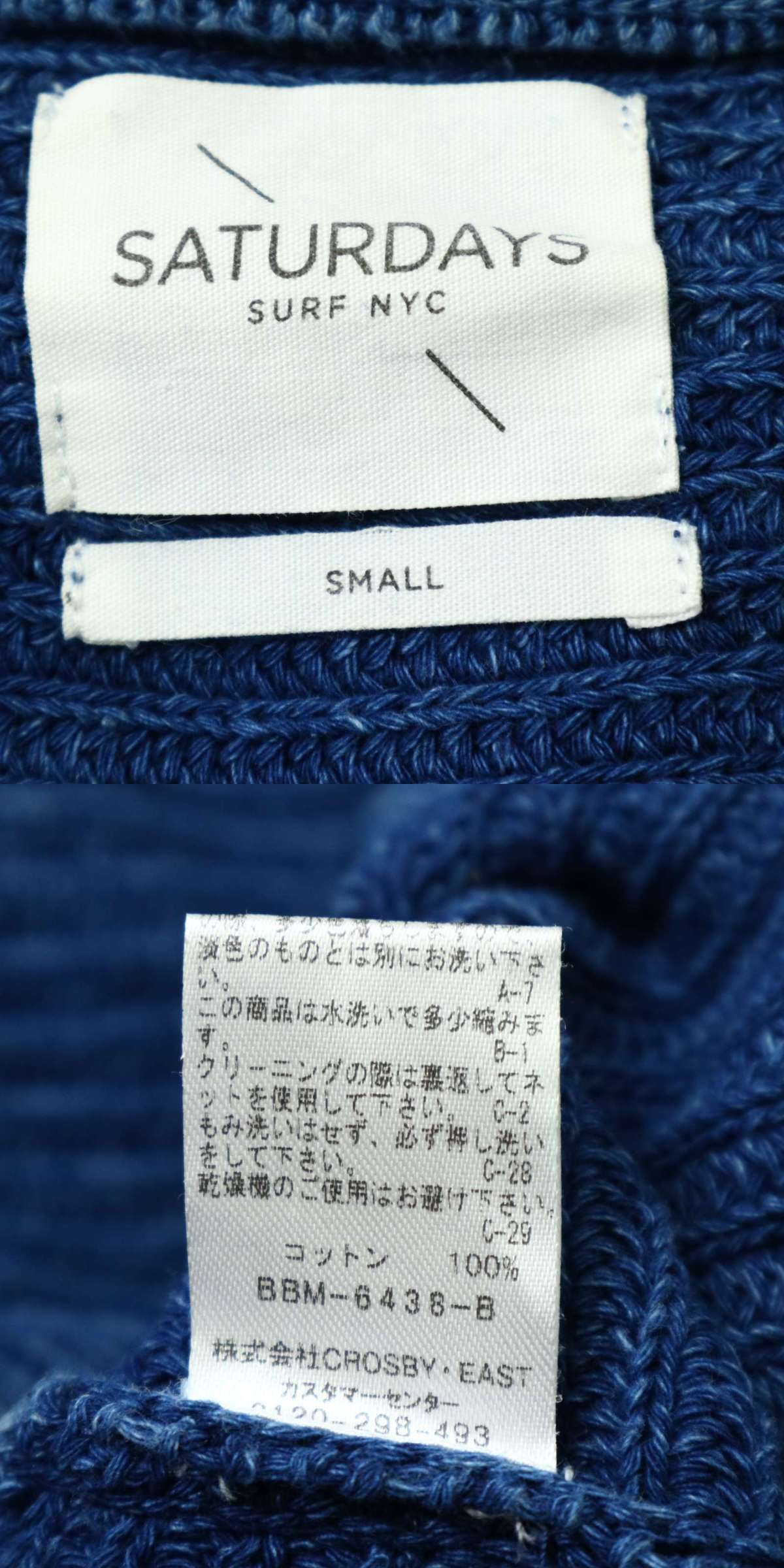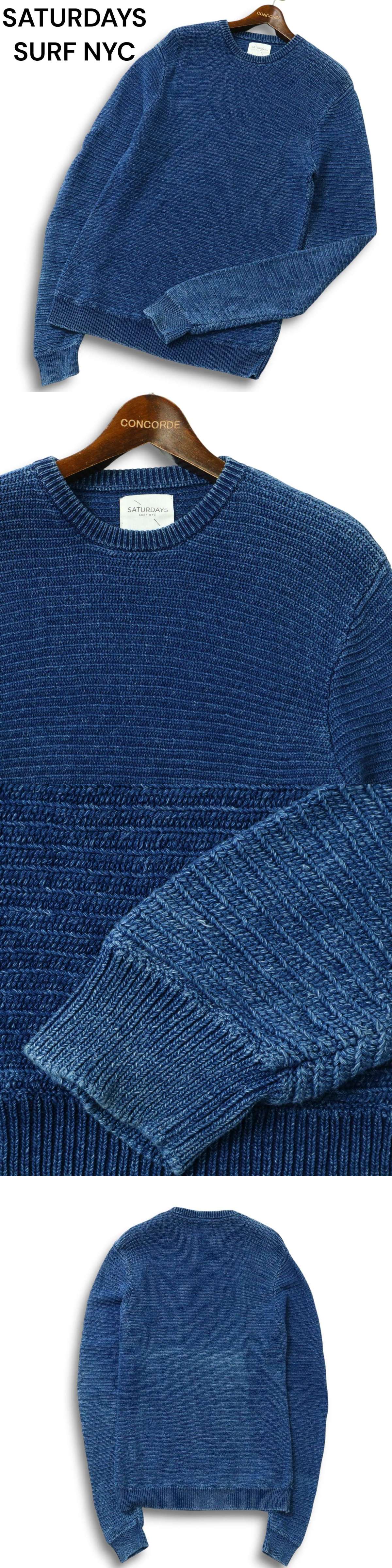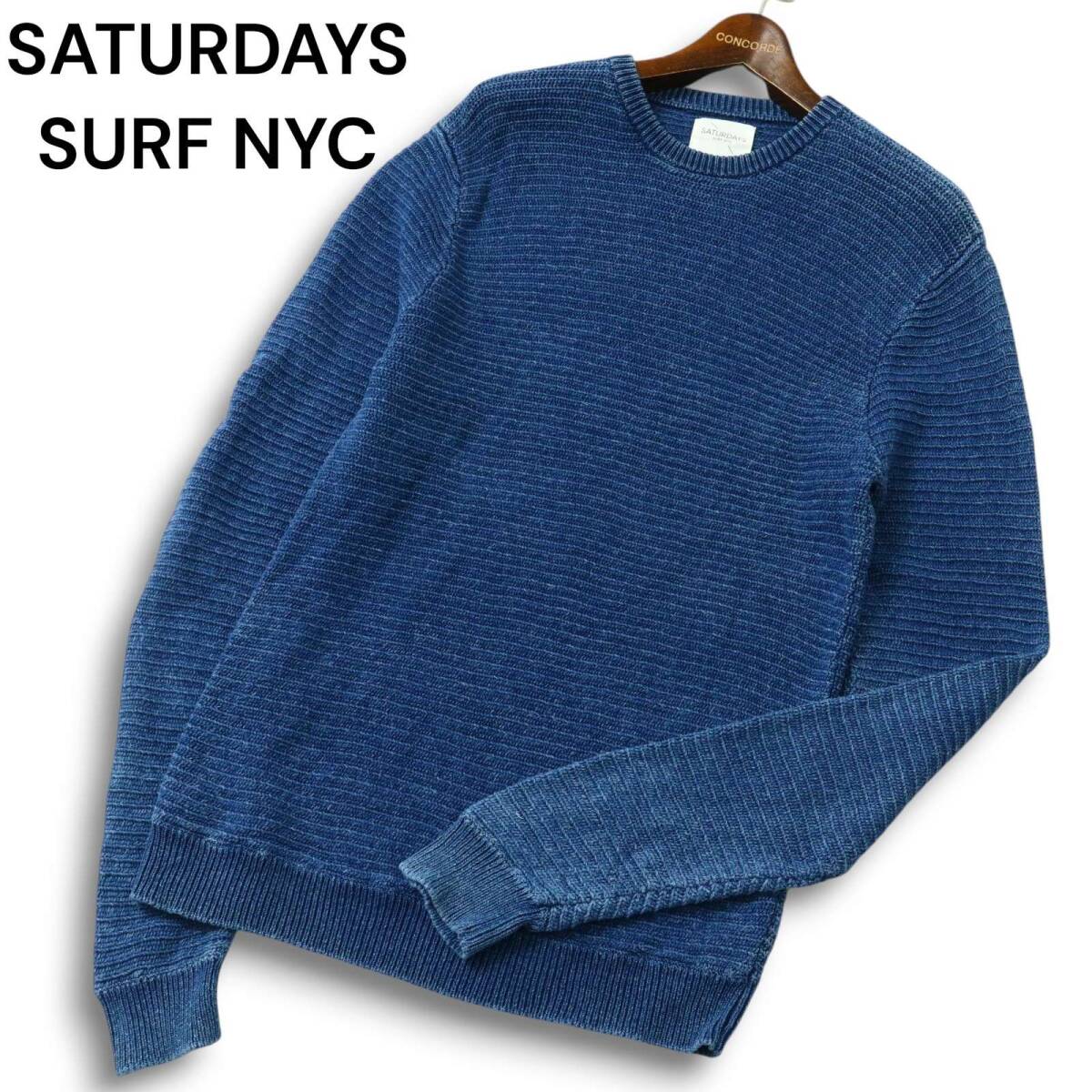 SATURDAYS SURF NYC サタデーズ サーフ ニューヨーク 通年 インディゴ★ コットン ニット セーター Sz.S メンズ
