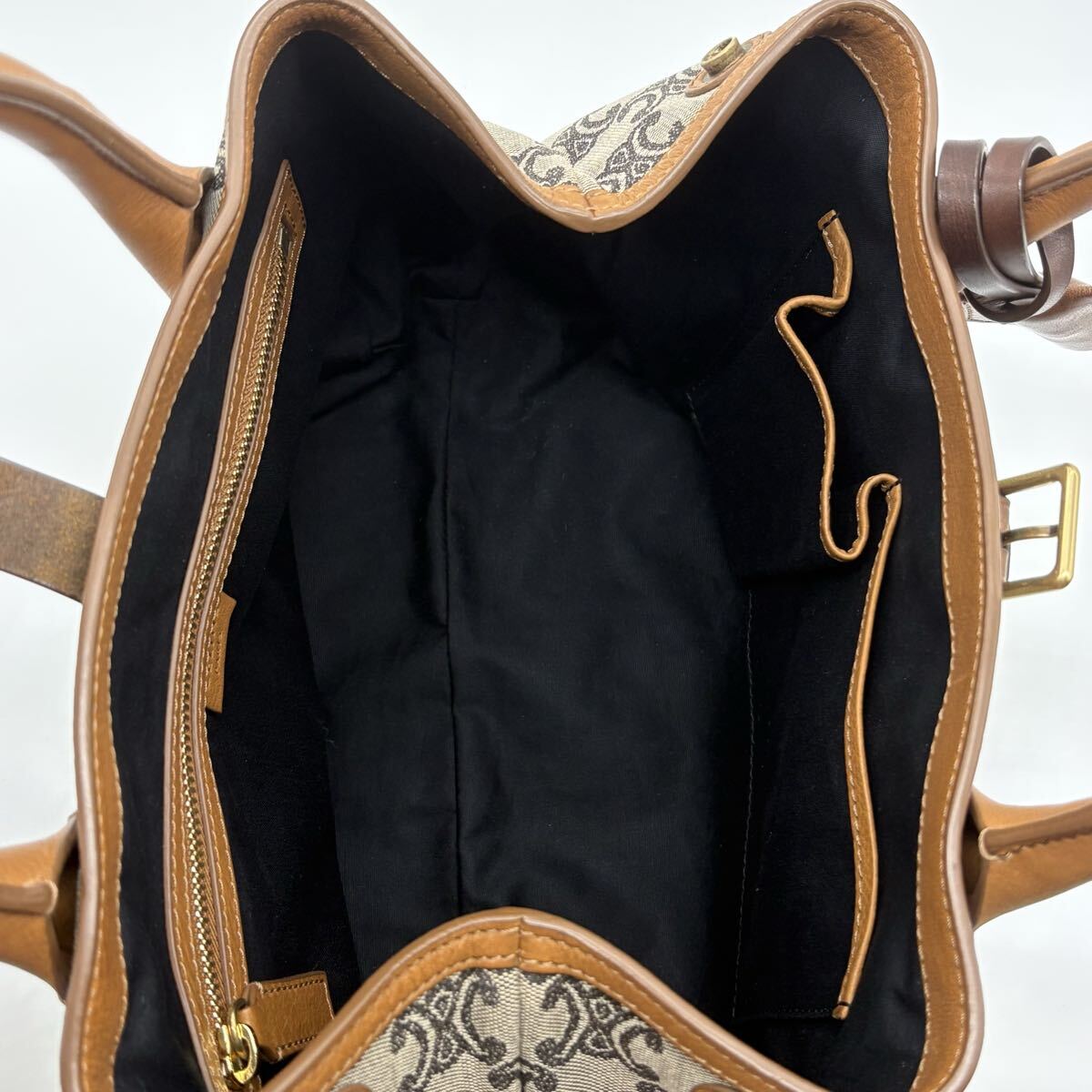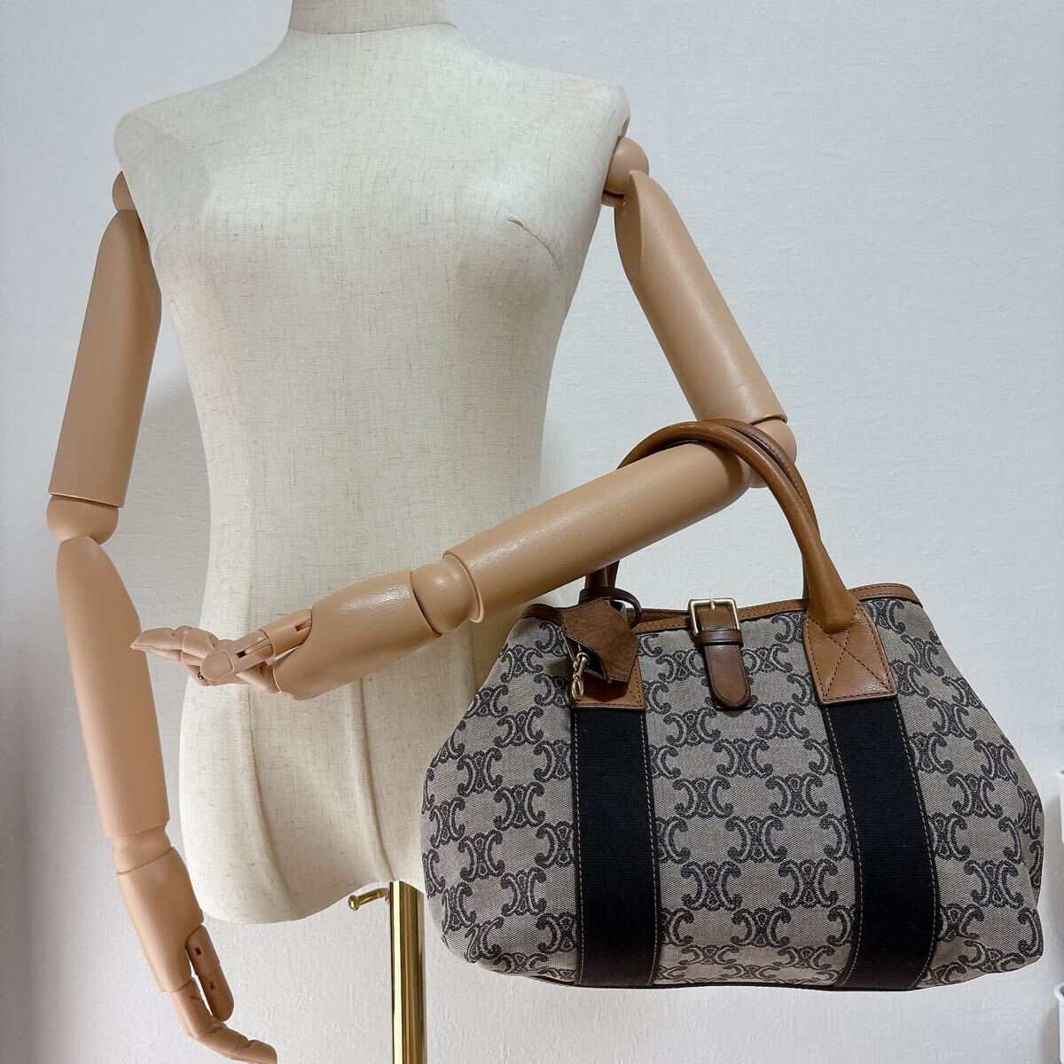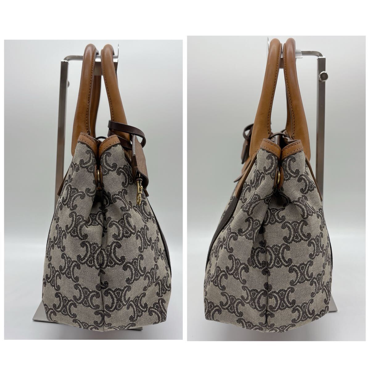 人気のトリオンフ柄パリマカダムキャンバスにブラウンレザーのコンビが上品なデザイン。