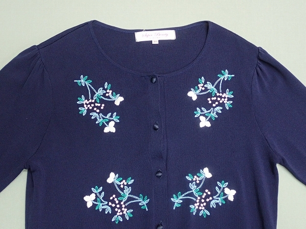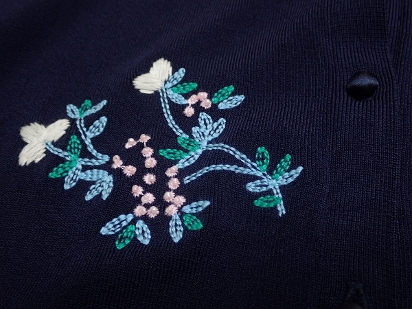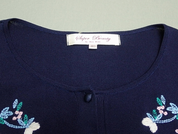 | Super Beauty スーパービューティーのニットカーディガンです。花柄刺繍が上品なデザインです。素敵にお使い頂けると思います。気になる方は是非ご検討下さい。 | |