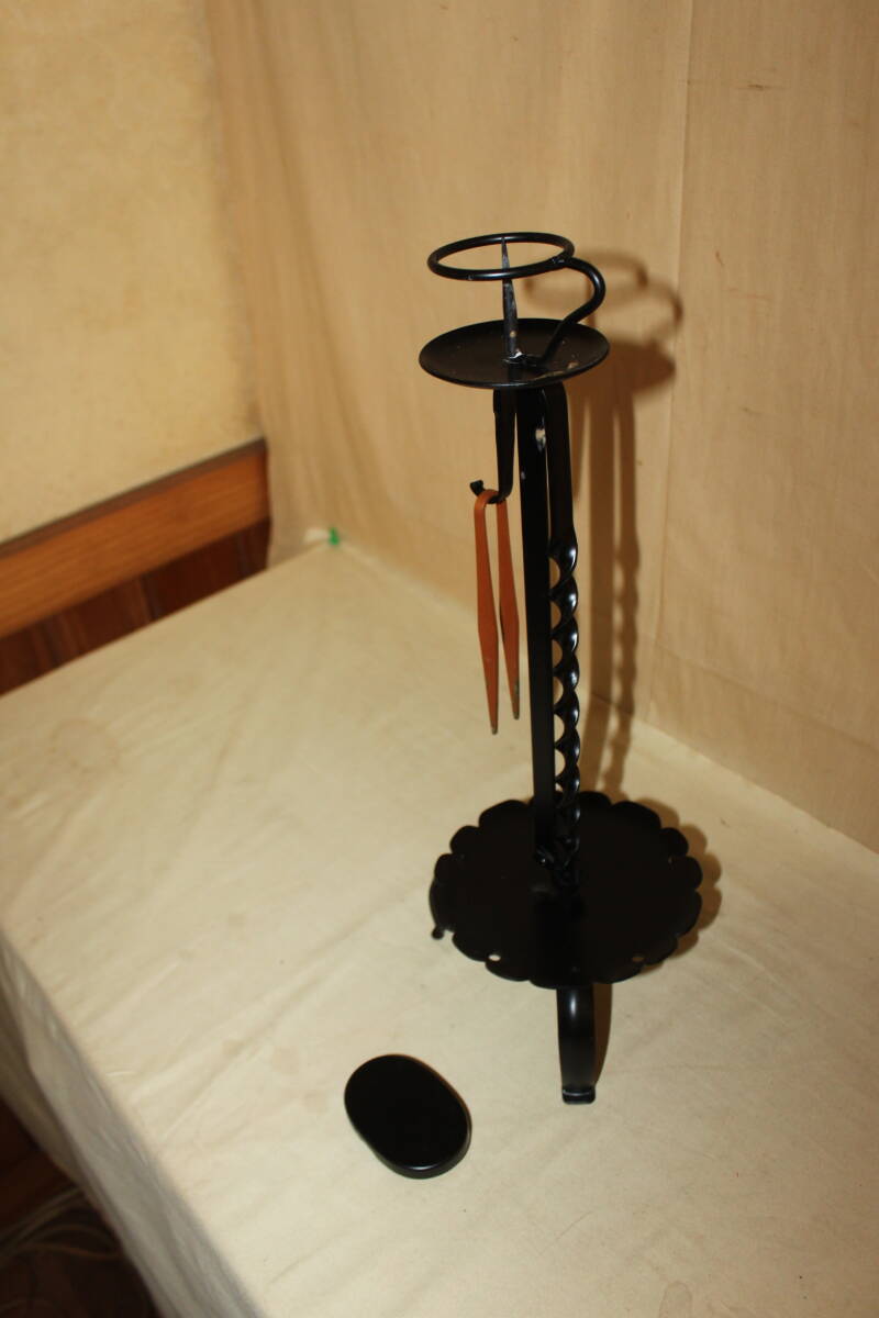 商品説明 茶道具 膳燭 夜咄道具 燭台です。 <商品の状態> 茶人宅保管品の古いお品でございますが綺麗な印象です。 お品・共箱等に時代感や微細なスレ・汚れ・キズ・シミ等ございますが、目立った ダメージは無く良好な状態です。 お品の詳細な状態については写真をご覧頂き、ご納得頂いた上でのご入札をお願いします。 [サイズ] 台径約14㎝ 高さ約41.5㎝ (伸ばした時の最大)約59.8㎝ タイトルの『検)』以降の単語は、商品に関連する検索用単語です。 説明しきれない多少の傷・汚れや経年に伴う変色などがあることをご理解のうえ、ご入札・ご落札お願い致します。 ★当方、古いものを主体として出品させて頂いております。 点検は致しておりますが汚れや傷等の見落としがある場合がございます。 ご了承の上よろしくお願い致します。 ★発送詳細 ・佐川急便の予定です。 ★支払方法 ・Yahoo!かんたん決済 他にも色々出品しています。よろしかったらご覧になってください。