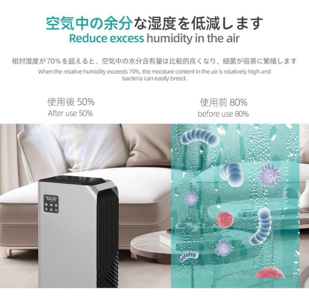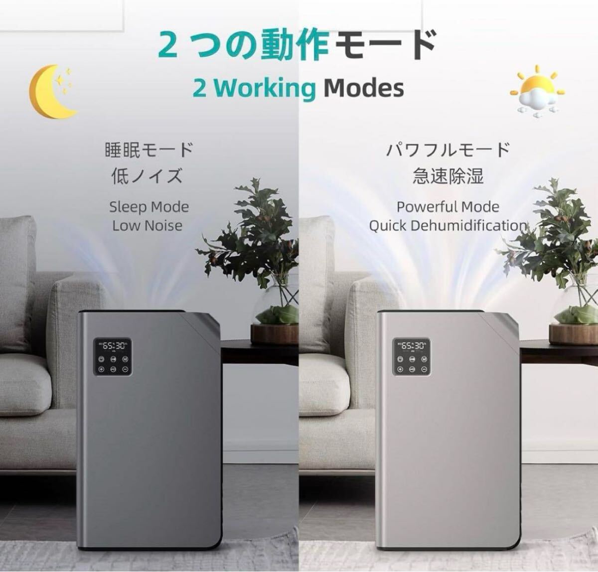 自宅用の除湿機は、急速な水分削減のための強力なモードと、就寝時の静かで低速操作のための睡眠モードで設計されています。強力なモードは、湿度の高いレベルに効率的に取り組み、迅速かつ効果的な湿気の除去を確保し、睡眠モードは、そのささやきの操作を伴う平和な睡眠環境を保証します。