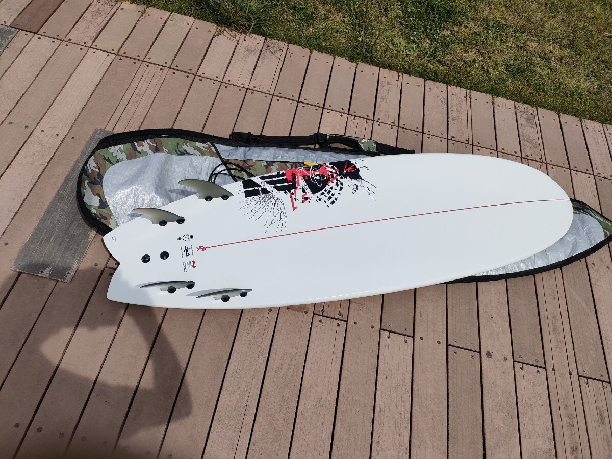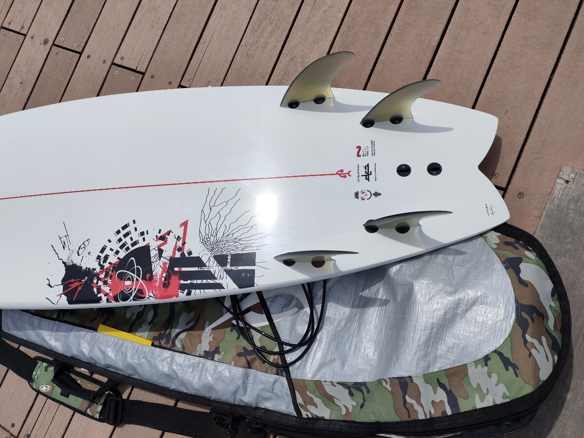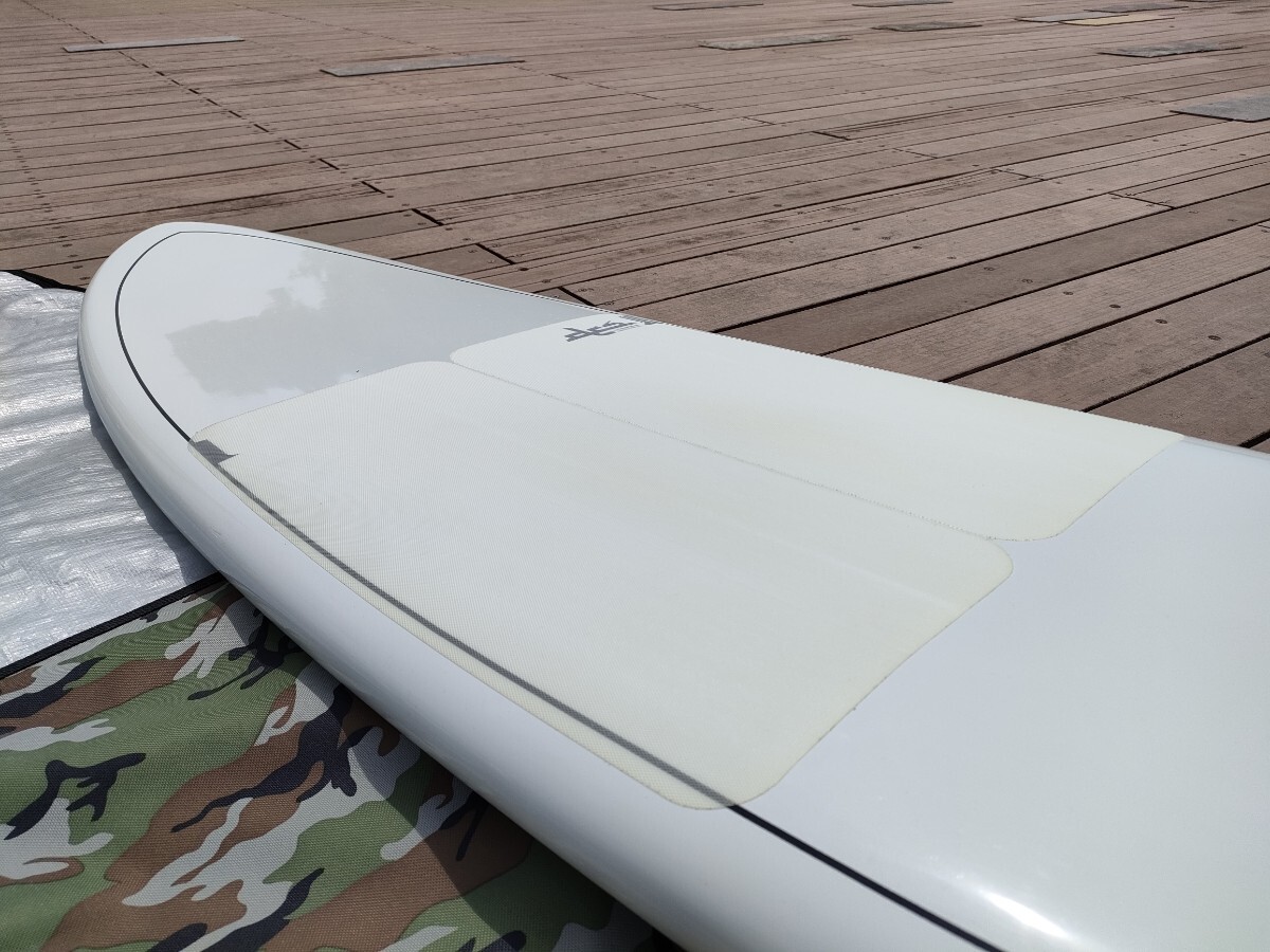 <コンディション>・十年以上前に購入しましたが、数回使用のみ。ケースに入れて保管しておりましたので、私見では綺麗だと思います。ワックスを塗りたくなかったので、滑り止めのシート貼ってます。付属品は、クワッド(フィン4枚)、ケース、リーシュコード(2年前に買い替えましたが一度も使用してません)