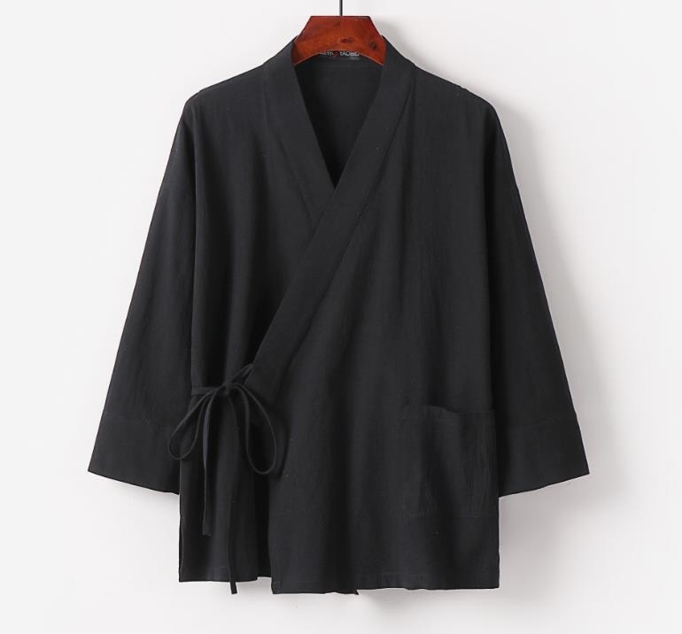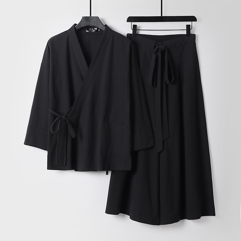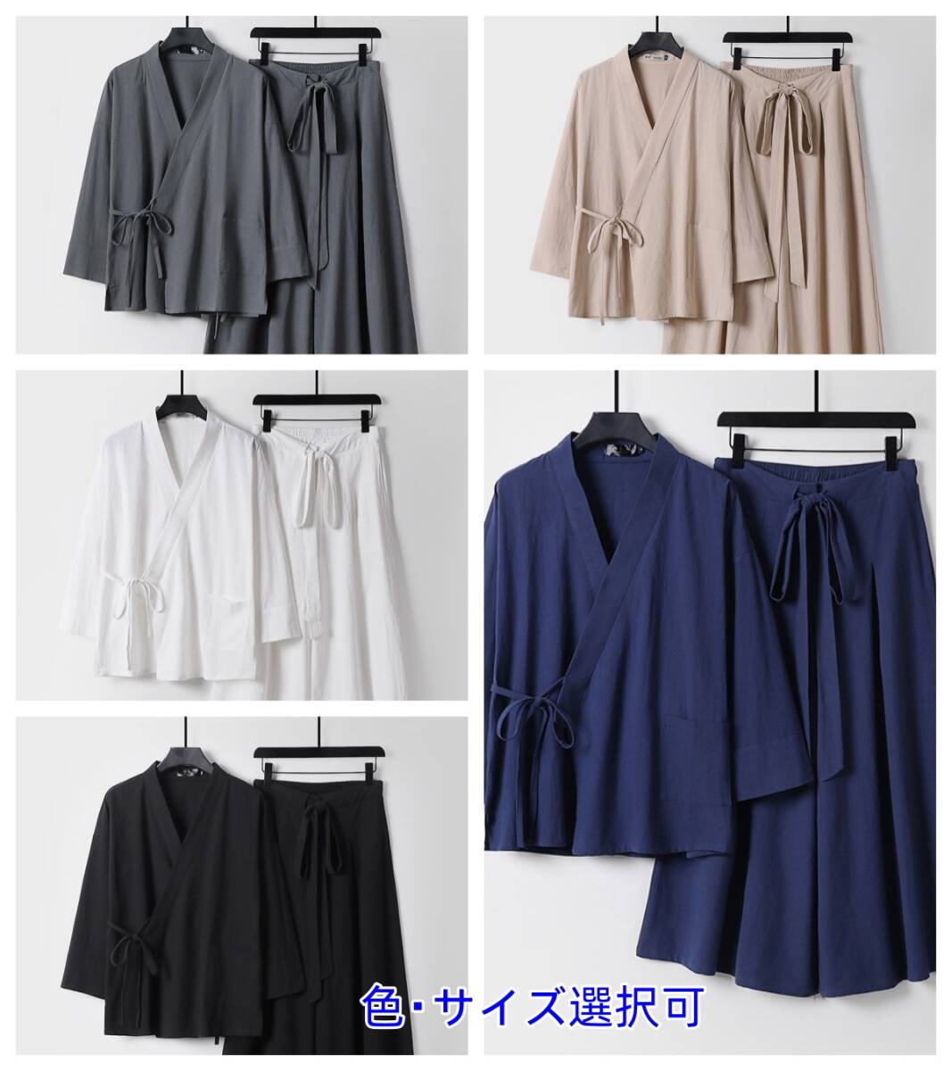 上下セット セットアップ 祭り パジャマ ルームウエア 部屋着 イベント 夏新品/メンズ 七分袖シャツ パンツ【★】黒 2XL