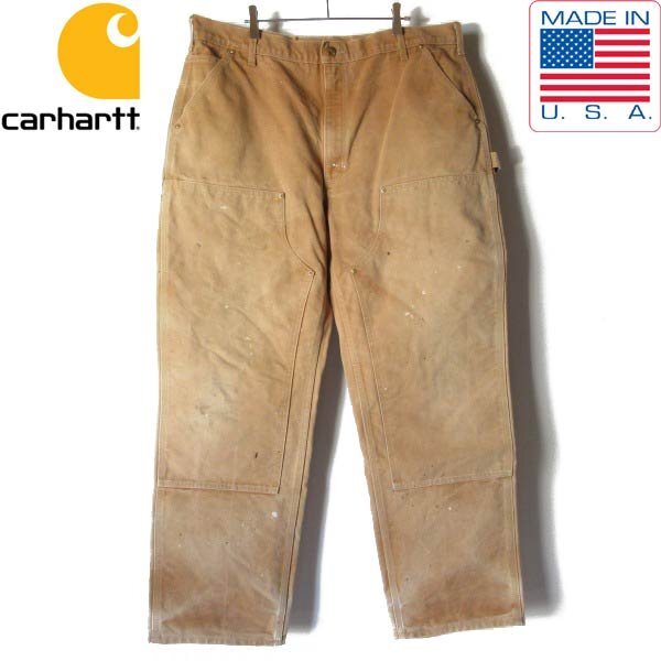 USA製 carhartt B01 BRN ダック ダブルニー ペインターパンツ 40×32 フェード 茶系 ペンキ カーハート アメリカ製 D151-25-0026ZV
