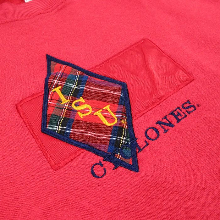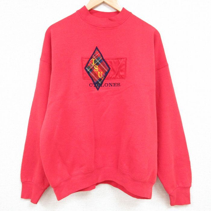 【商品名】 XL★古着 フルーツオブザルーム 長袖 スウェット メンズ 00年代 00s サイクロンズ ISU 刺繍 クルーネック 赤