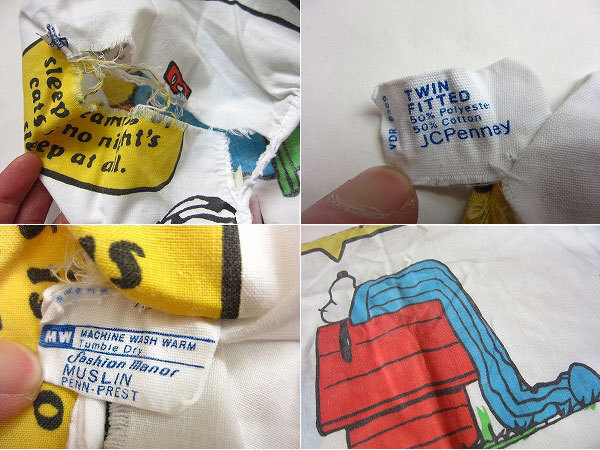レア柄 70s スヌーピー カットなし シーツ 大判はぎれ生地 ビンテージ ハンドメイド リメイク D124-71-0090ZV
