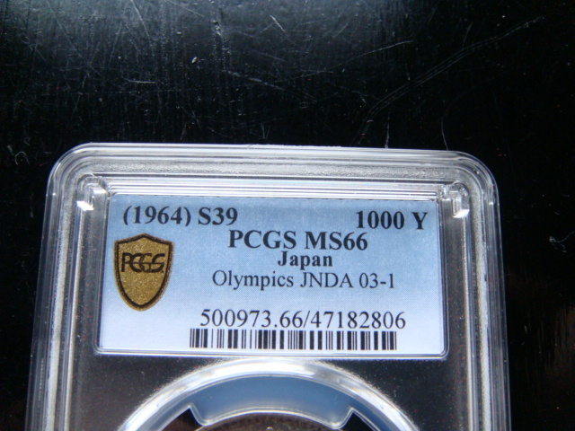 PCGSMS-66東京五輪千円銀貨昭和39年(1964年)/未使用良品です。像を優先し、参照願います。