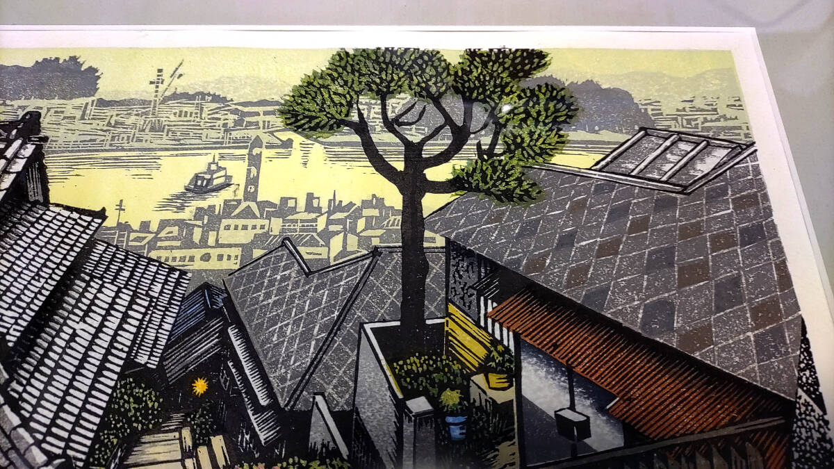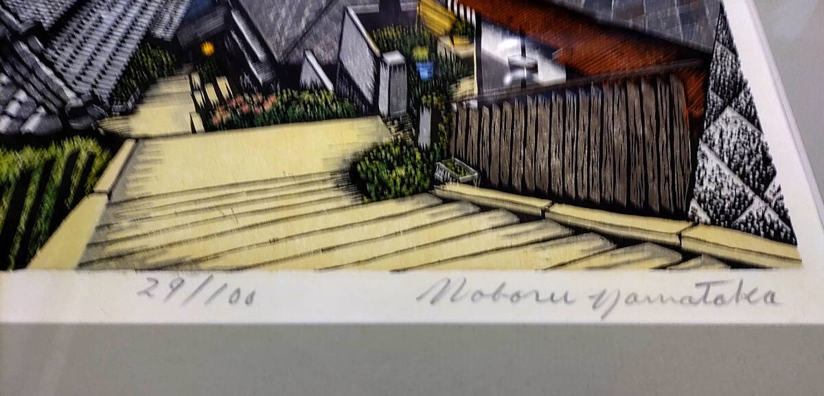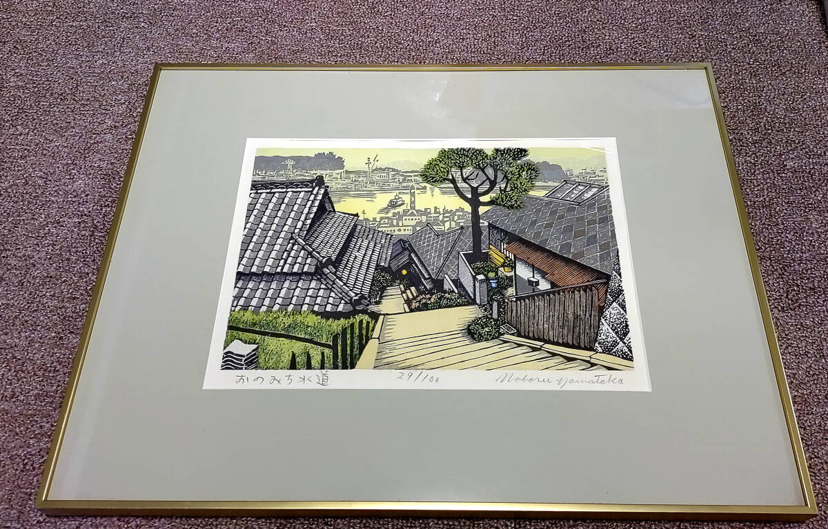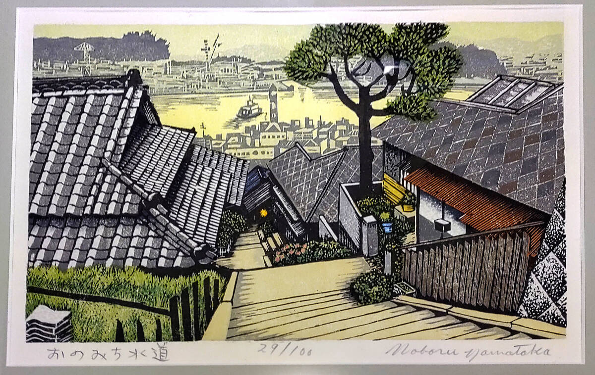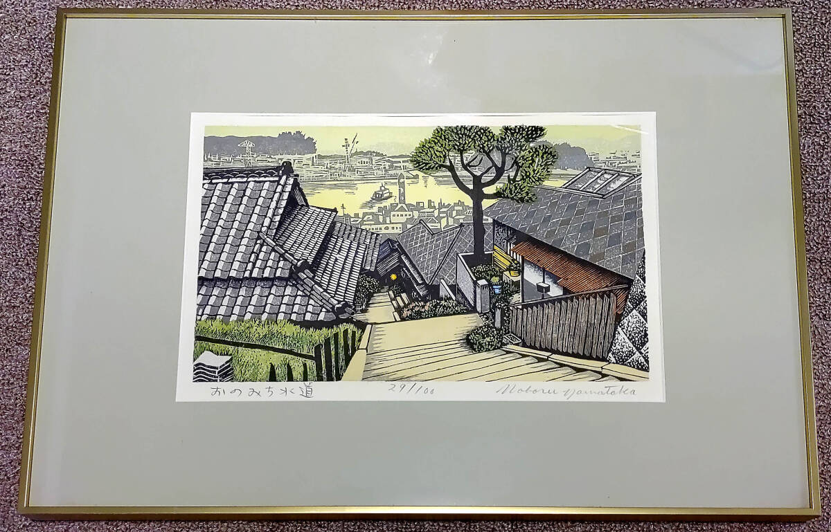 山高登 木版画「おのみち水道」29/100 額装 真作保証 美品