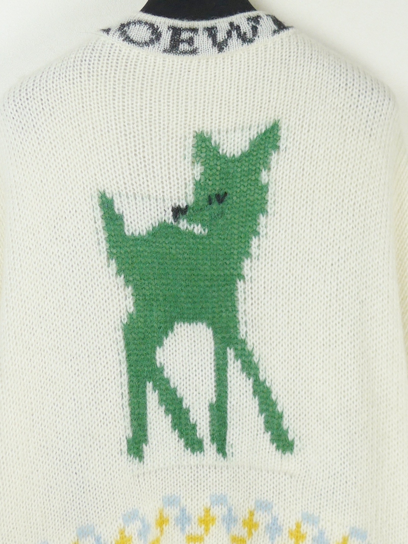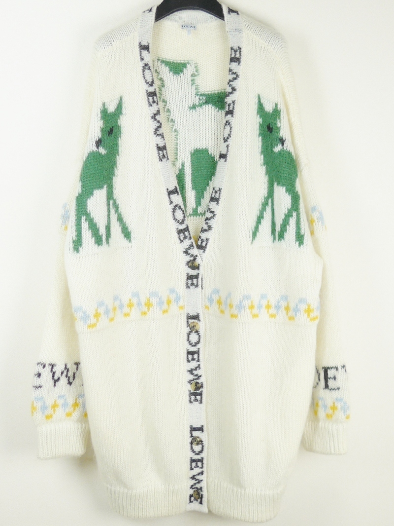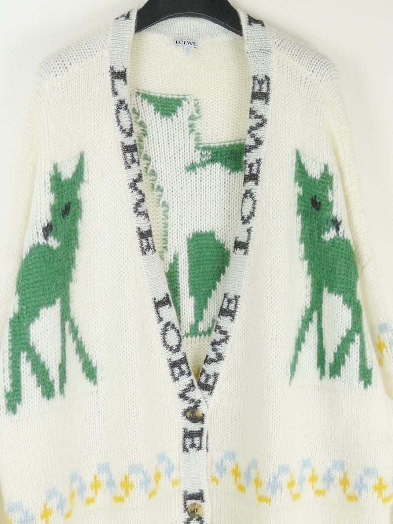 LOEWE ロエベ アニマル&ロゴ モヘアロングカーディガンL シカ 鹿 キッドモヘヤ オーバーサイズ ニット JWアンダーソン レディース
