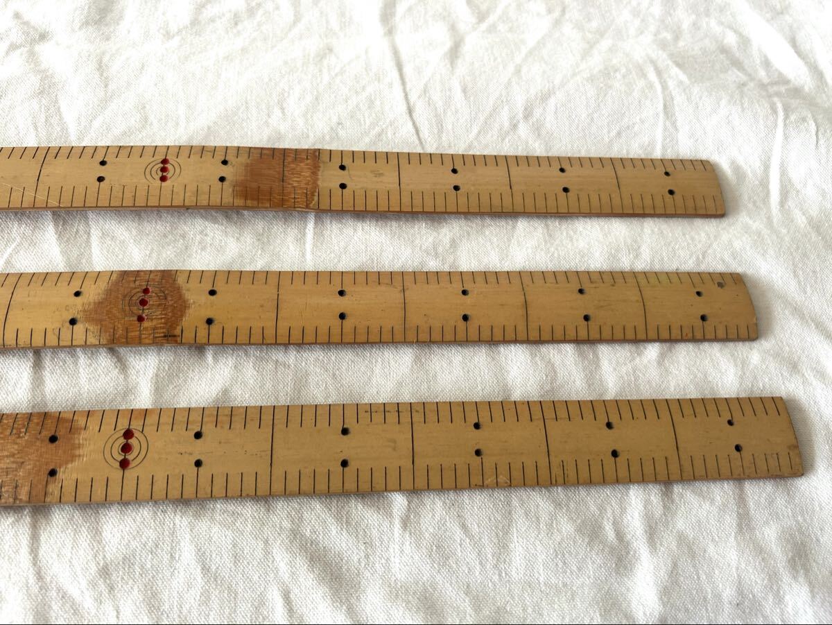 竹製のシンプルな直線定規、尺、寸、分目盛り付きの3本セット。