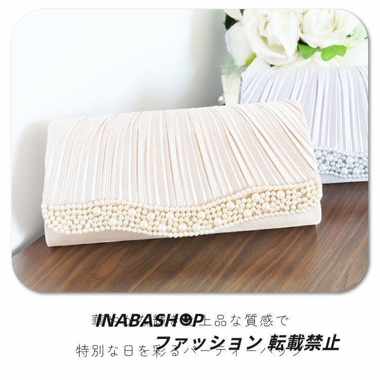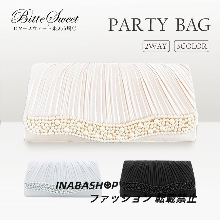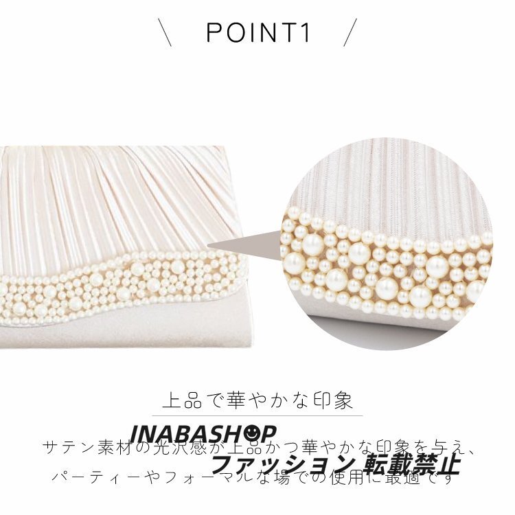 パーティーバッグ クラッチバック チェーンバッグ ショルダー ハンドバック ショルダーバッグ パール サテンバッグ 結婚式 お呼ばれ