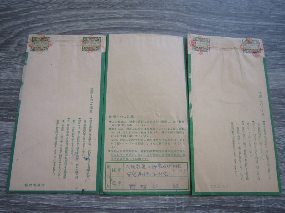 現金書留 普通切手 風神90円切手 能面70円切手 マツ20円切手 48.5.16 12-18