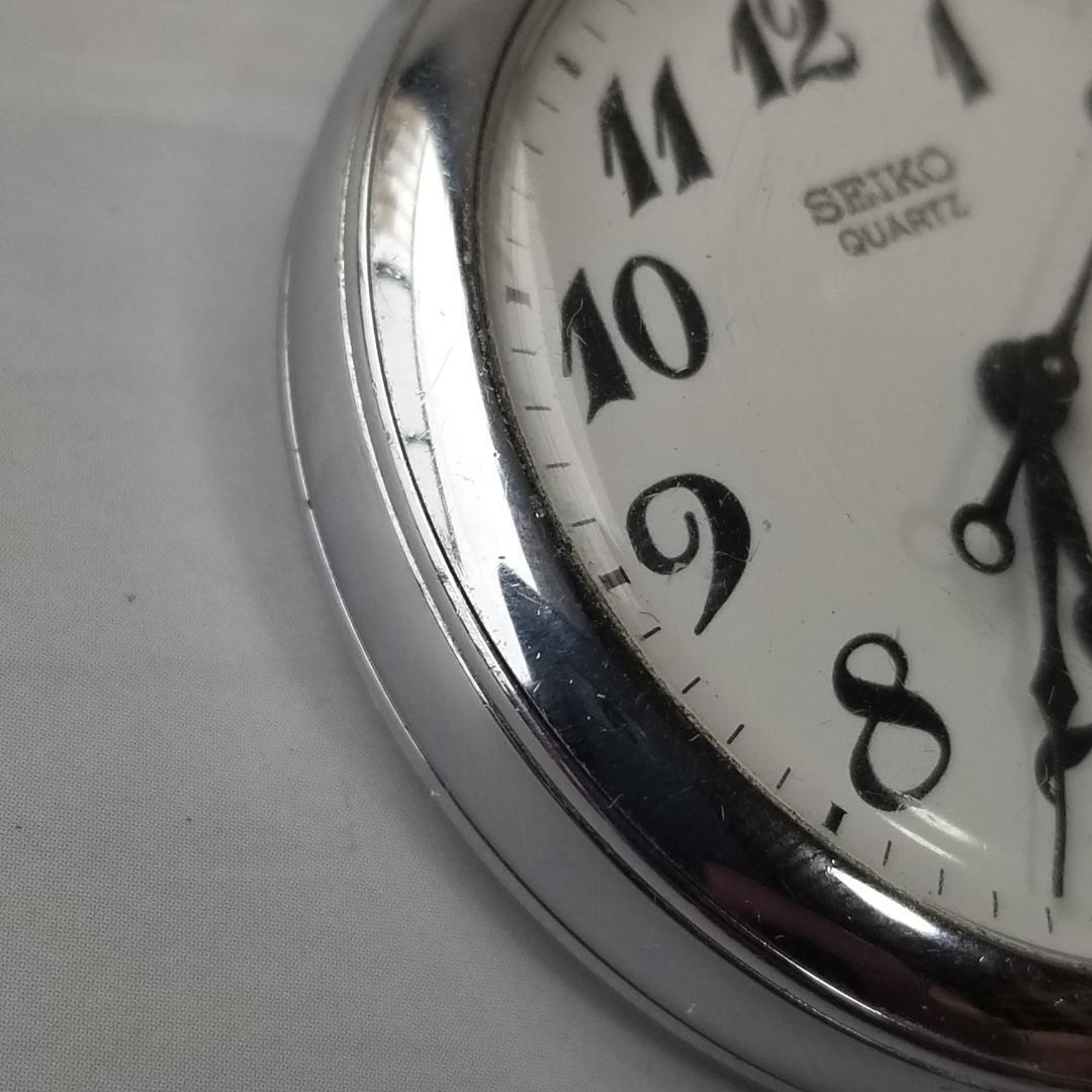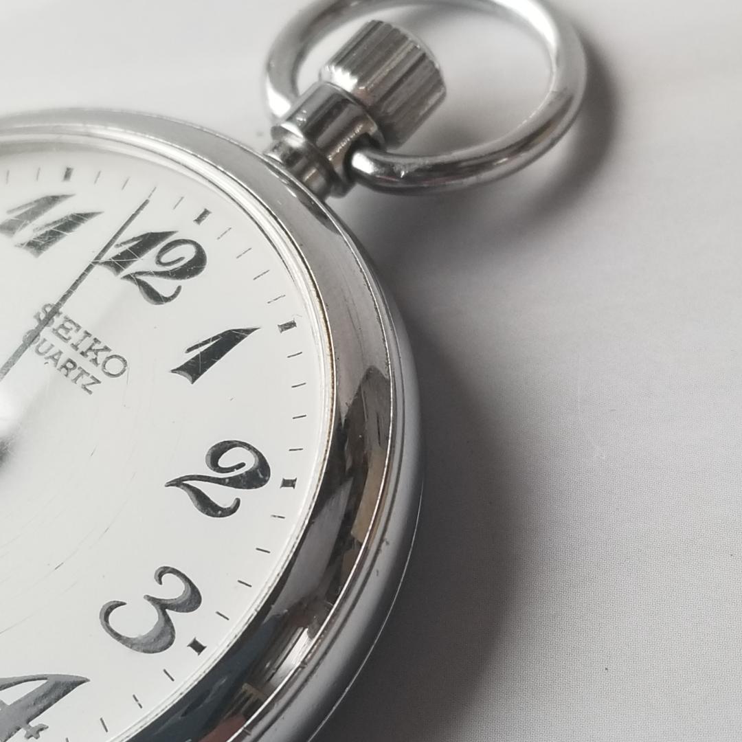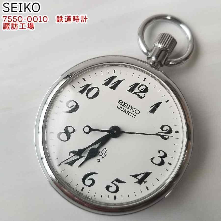 【電池新品】稼働品 セイコー クォーツ 鉄道時計 7550-0010 諏訪工場 ホワイト文字盤 QZ SEIKO 懐中時計【687】
