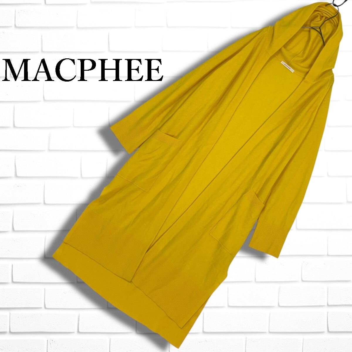 ◆美品◆ MACPHEE マカフィー トゥモローランド ウール 100% 羽織り ゆったり♪ フーディー 長袖 ロング カーディガン ガウン 黄色 レディース S ◆送料無料◆ 6305H◇