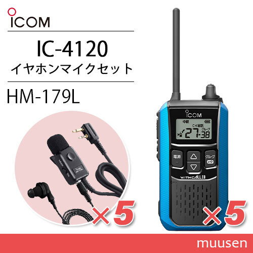 アイコム ICOM IC-4120MB(×5) ブルー 特定小電力トランシーバー + HM-179L(×5) イヤホンマイク 無線機