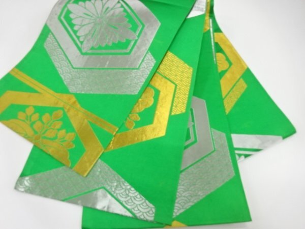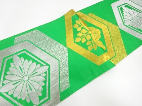 ys7512139; 亀甲に菊・桐模様織出し丸帯(材料)【アンティーク】【着】