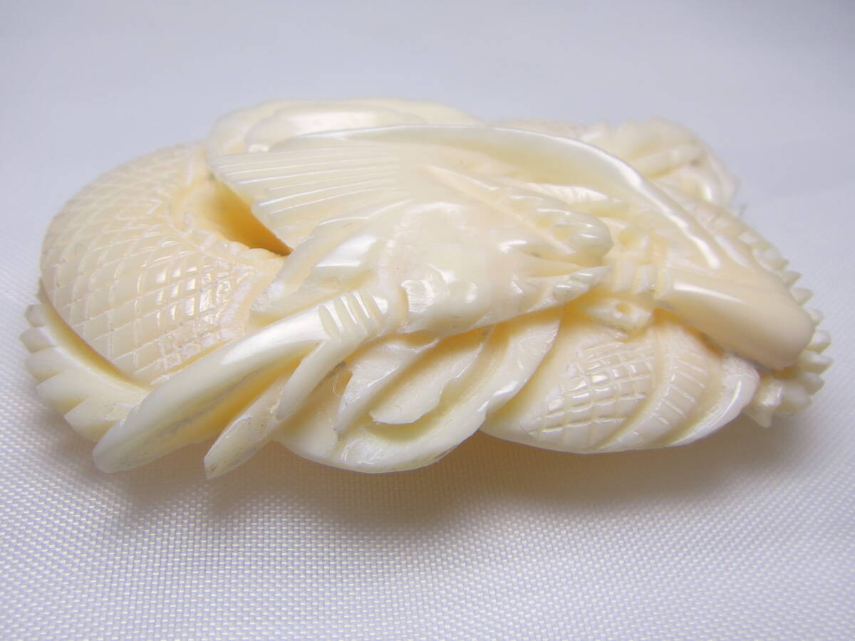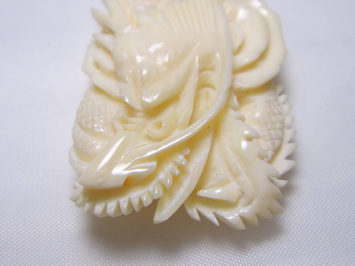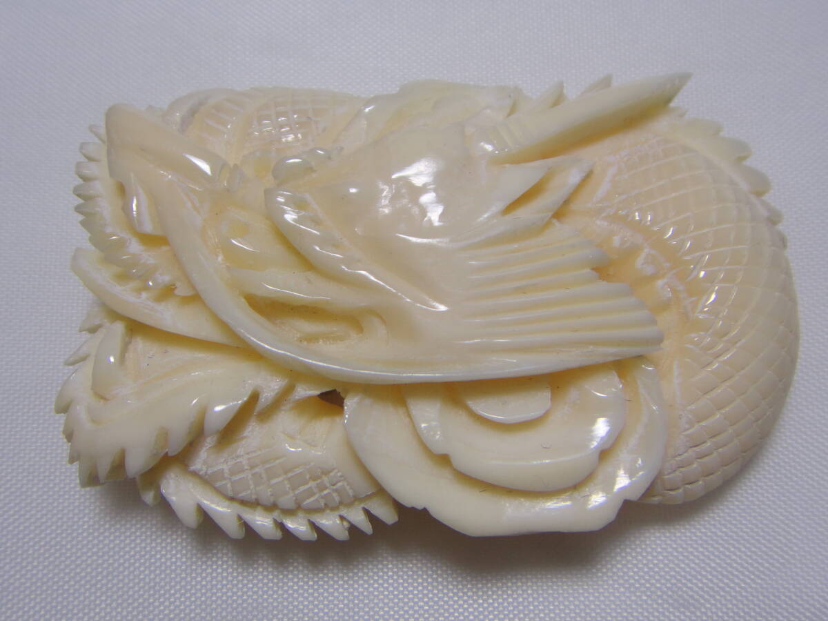 帯留め 龍彫刻 天然素材 ツノ 骨 レトロ ヴィンテージ Y765