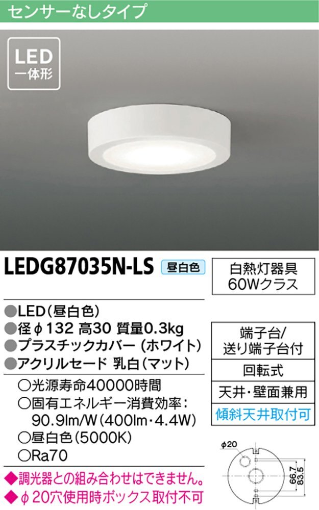 ▼商品名 | [未開封品 2点セット] 東芝ライテック LED 小形シーリングライト LEDG87035N-LS 昼白色 (4) [西那須野店] |