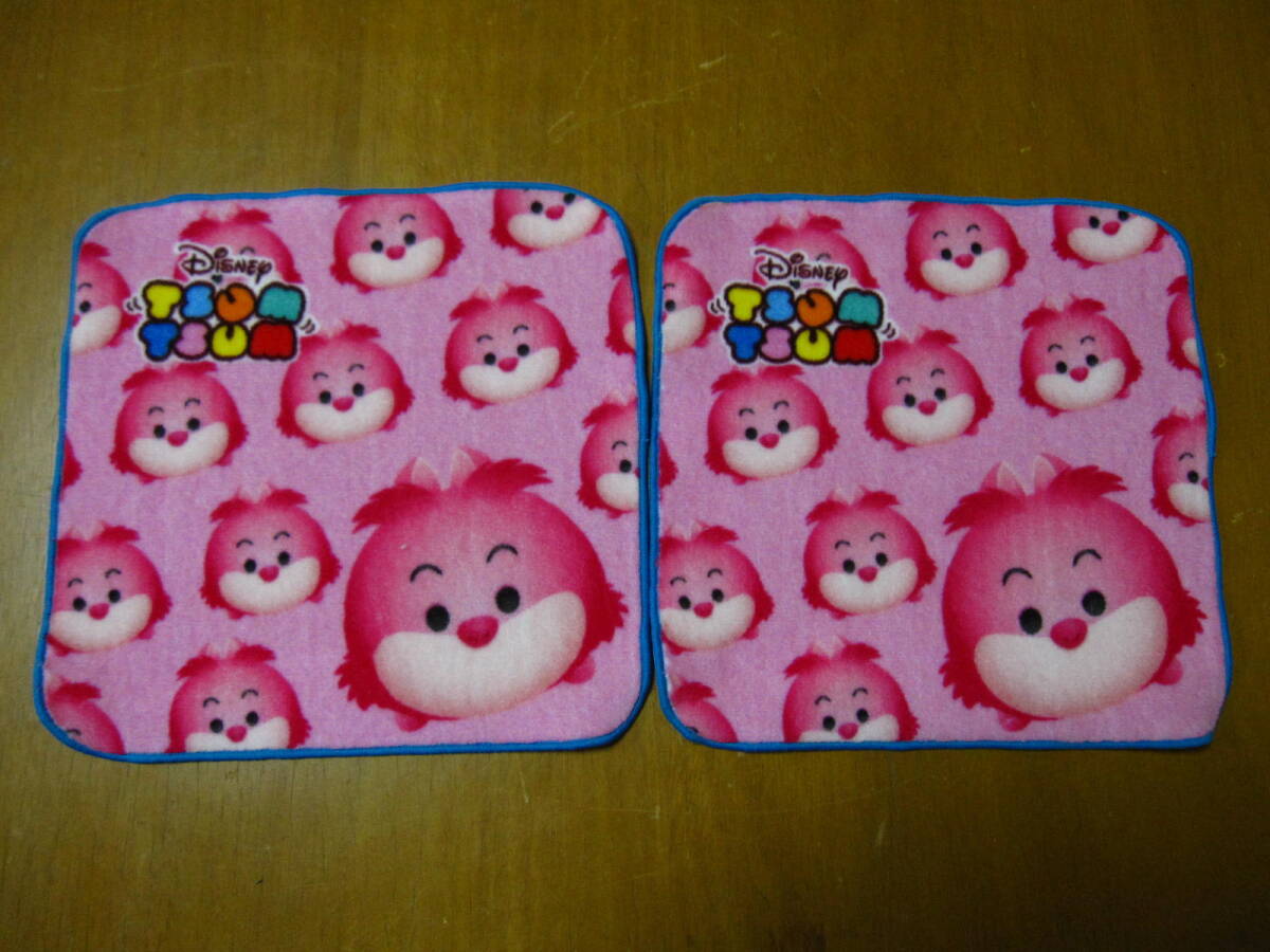 ハンドタオル 新品 2枚 チェシャ 猫 ディズニー ツムツム セット 絵柄 模様 秋 冬 男女 兼用 子供 ハンカチ 格安 綿 アリス キャラ Disney