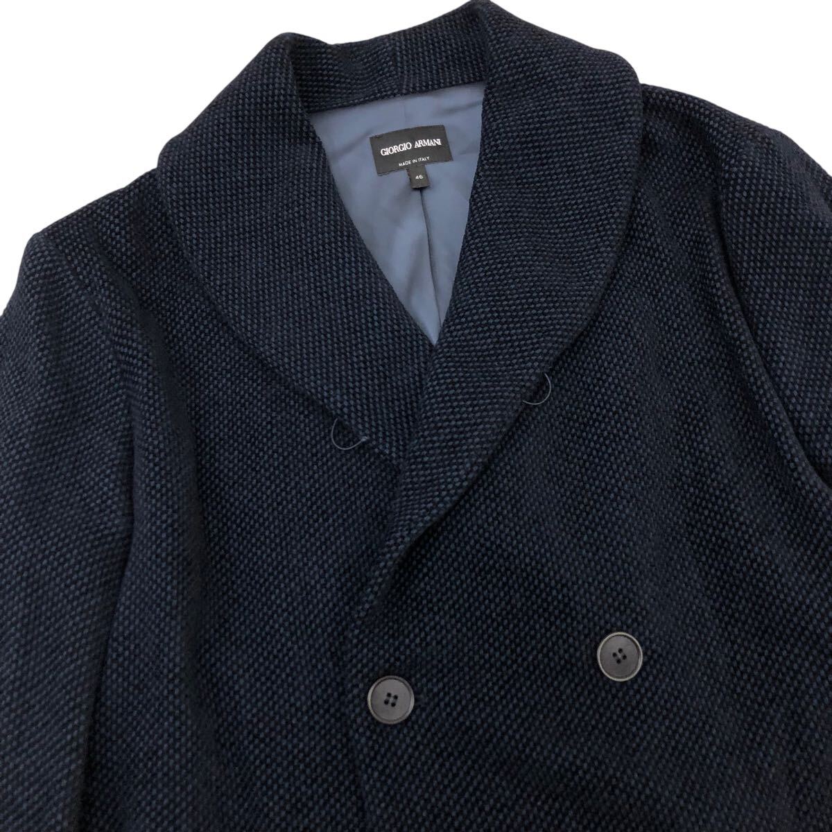 9m647-7 イタリア製 GIORGIO ARMANI ジョルジオ アルマーニ ショールカラー ダブル ジャケット 上着 羽織り アウター ネイビー メンズ 46