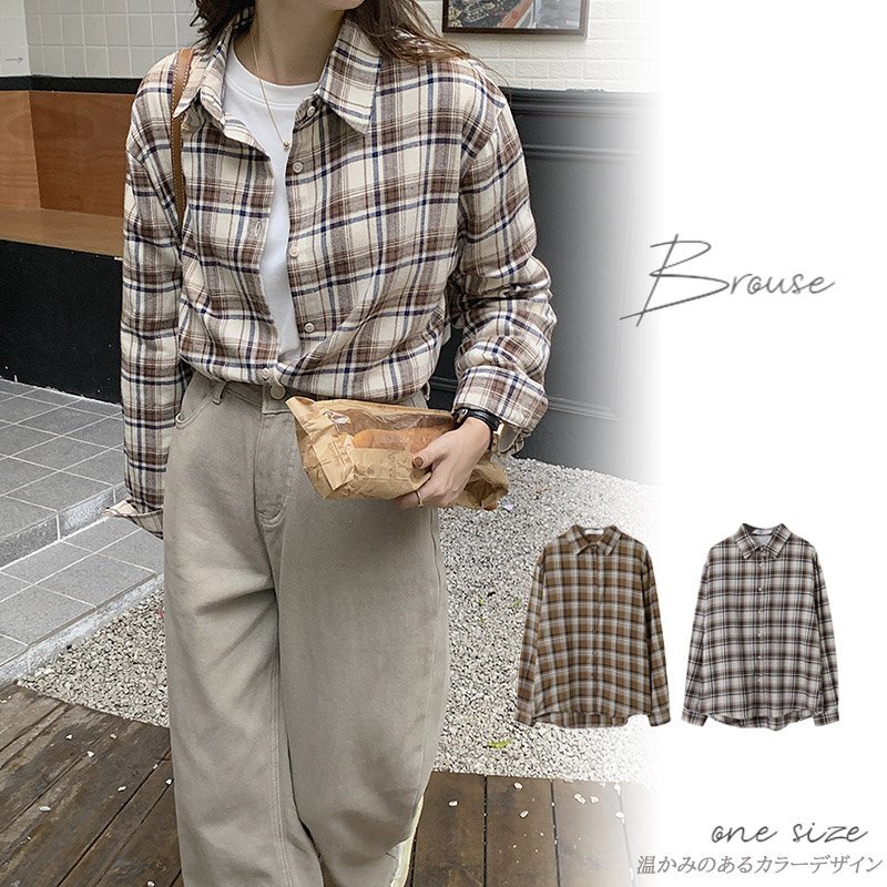 ・やさしい風合いで着心地抜群のチェック柄ブラウスです。