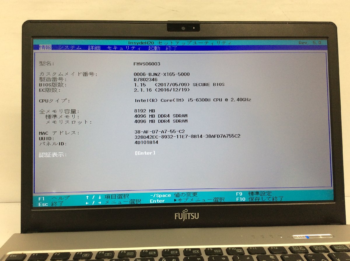 ジャンク/ FUJITSU FMVS06003 LIFEBOOK S936/P Intel Core i5-6300U メモリ8.19GB ストレージ無し 【K20592】