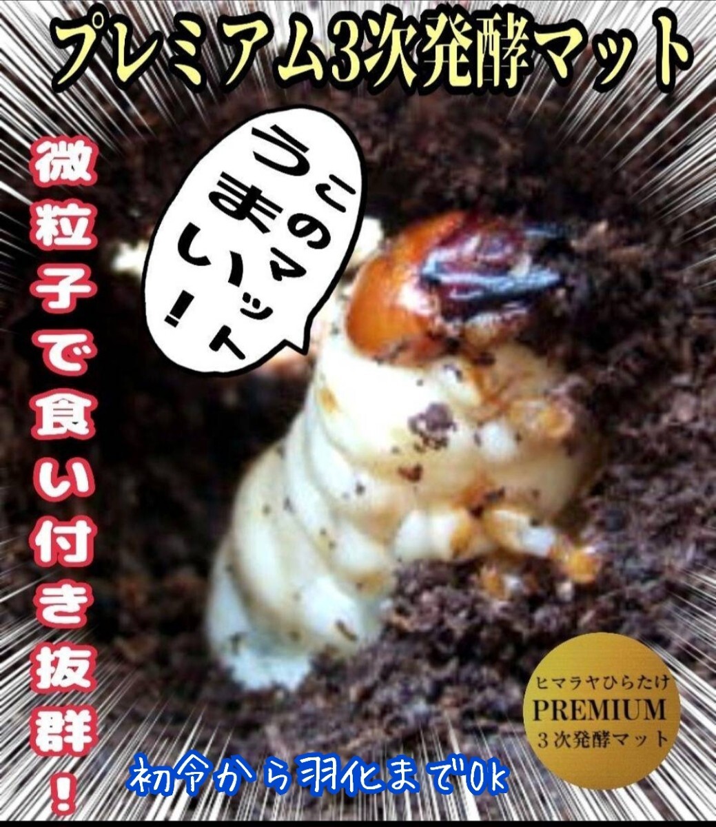 プレミアム3発酵マットはミヤマクワガタなど発酵マットを好むクワガタの幼虫の餌、産卵用マットにお薦めです。 とにかく幼虫の食い付きがよくモリモリ食べます。 大型の成虫にするポイントは幼虫期間にどれだけたくさんの質の良い餌を食べさせることができるかです。 高カロリーで絶妙なバランスの栄養添加剤配合の「ヒマラヤひらたけプレミアム3次発酵マット」は幼虫の餌の中では最高峰です。 特にアクベシアヌスミヤマクワガタなど外産ブリーダーの方から好評でリピート注文をたくさん頂いています。 全国の昆虫ショップやカブトムシ、クワガタ専門店からも注目されお陰様で定期的に大量の注文を頂いています。 ![]() 産卵マットに使うとメスが大量に卵を産みます。 この発酵マットの愛用者にはビークワコンテストで何度も上位入賞されてる方もいます。 カブトムシ、クワガタの飼育を長年やってきて、マットも色々と実験を繰り返してきました。 試行錯誤した結果一番大きく元気に育ったのが「ヒマラヤひらたけプレミアム発酵マット」でした。 雑菌処理も完璧にやってありますので雑虫やコバエもわきません。 【適応品種】 ミヤマ・ノコギリ・ヒラタ・アンテ・オオクワ・キンイロ ・ニジイロ・ツヤクワ・ホソアカ ・フタマタ・メンガタ・シカクワ・ネブト・ハナムグリ・ウガン ゴライアス・オーベルチュールなど 当然、カブトムシ全般にも抜群です。 購入後、商品、飼育のサポートも致します。 ![]() 他にもクワガタ、カブトムシ用品多数出品しています。 出品者名をクリックして頂けたら商品一覧が見れます。 メッセージ頂けたら同梱も可能です。 |