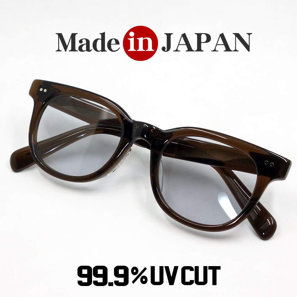 日本製 鯖江 サングラス 眼鏡 フレーム 職人 ハンドメイド ウェリントン 新品 ブラウン 茶 ライトグレー
