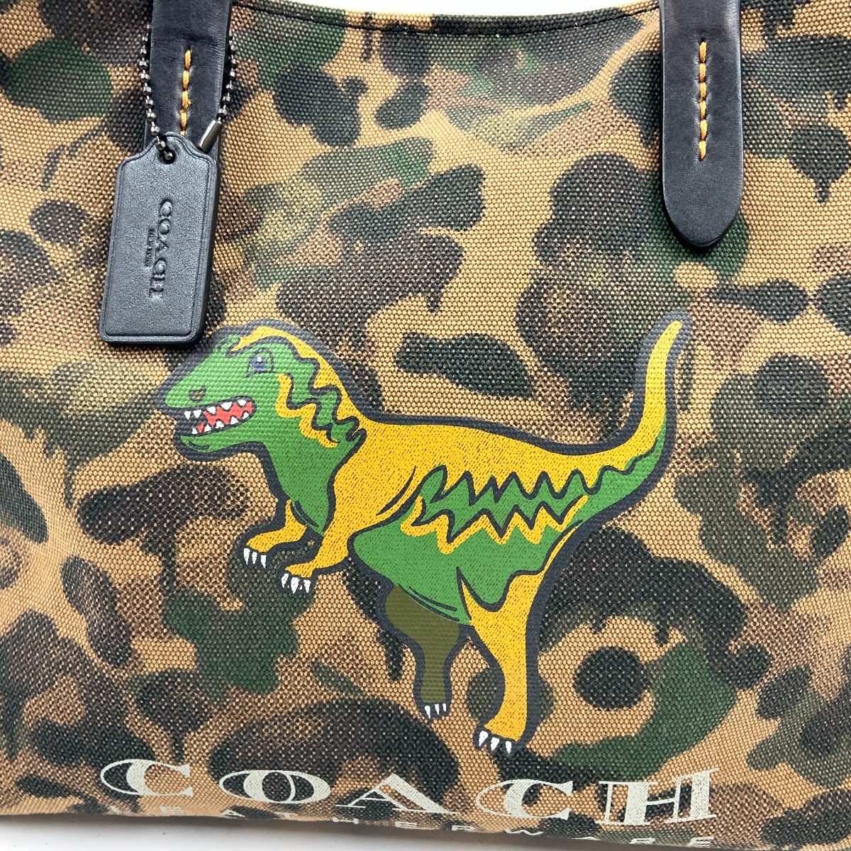 【商品名】中古 COACH コーチ レキシー トート 42 カモフラ柄 迷彩 恐竜プリント トートバッグ 肩掛けバッグ 26895 ブラウン やや傷や汚れあり