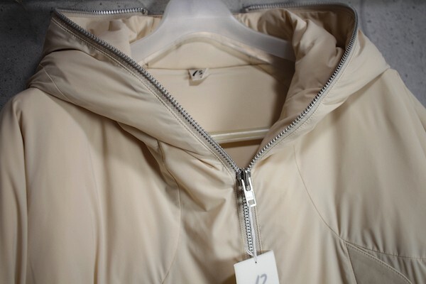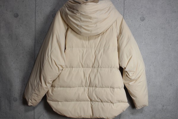 《デザイン》 素材のストレッチ性とソフトさを活かし、ふんわりとしたシルエットが特長のショートダウンです。 切り替えラインとポケットのつながりにこだわったパターンです。 ファスナーはフードを一周まわるような仕様にしてデザインポイントになっています。