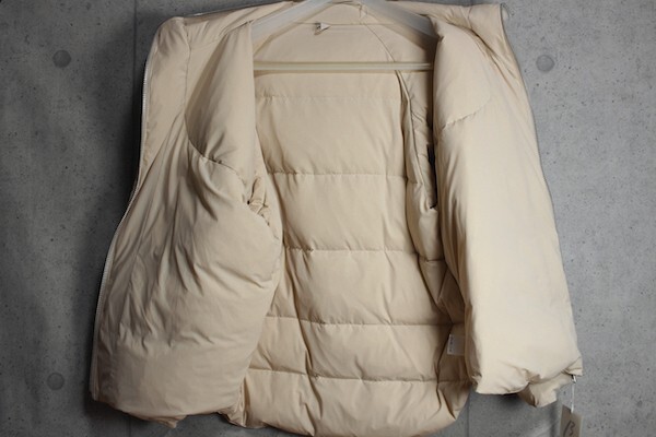 《素材》 薄手超軽量のタフタです。 ソフトでふんわり、微起毛風な風合いを表現しています。 ダウンは、混率的にはダウン90%フェザー10%を使用しており、ダウンフィルパワー750、さらに洗浄度500以上の嵩高性、きれいさのダウンを使用しています。